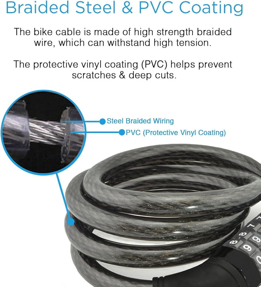 أمان عالي - لقد صممنا قفل دراجة Aduro خفيف الوزن مع سلك مجدول عالي القوة مغلف بمادة PVC التي يمكنها تحمل التوتر العالي ومنع الخدش وارتداء أكثر متانة.