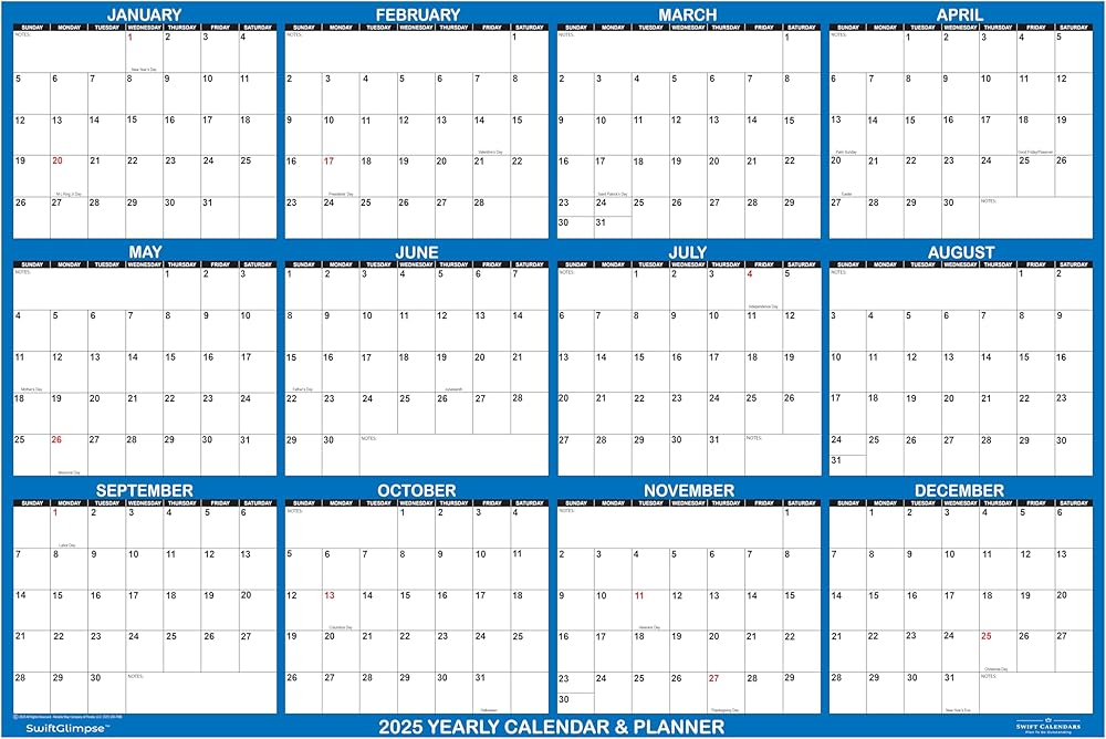 LARGE 2025 CALENDAR BLOCKS: Each Wall Calendar features large blocks for scheduling and notes. Vertical side blocks are 1.5" x 1.25" - Horizontal side blocks are 1.25" x 1.25". Bold and large print with bright white background allows for easier viewing and reading at-a-glance.