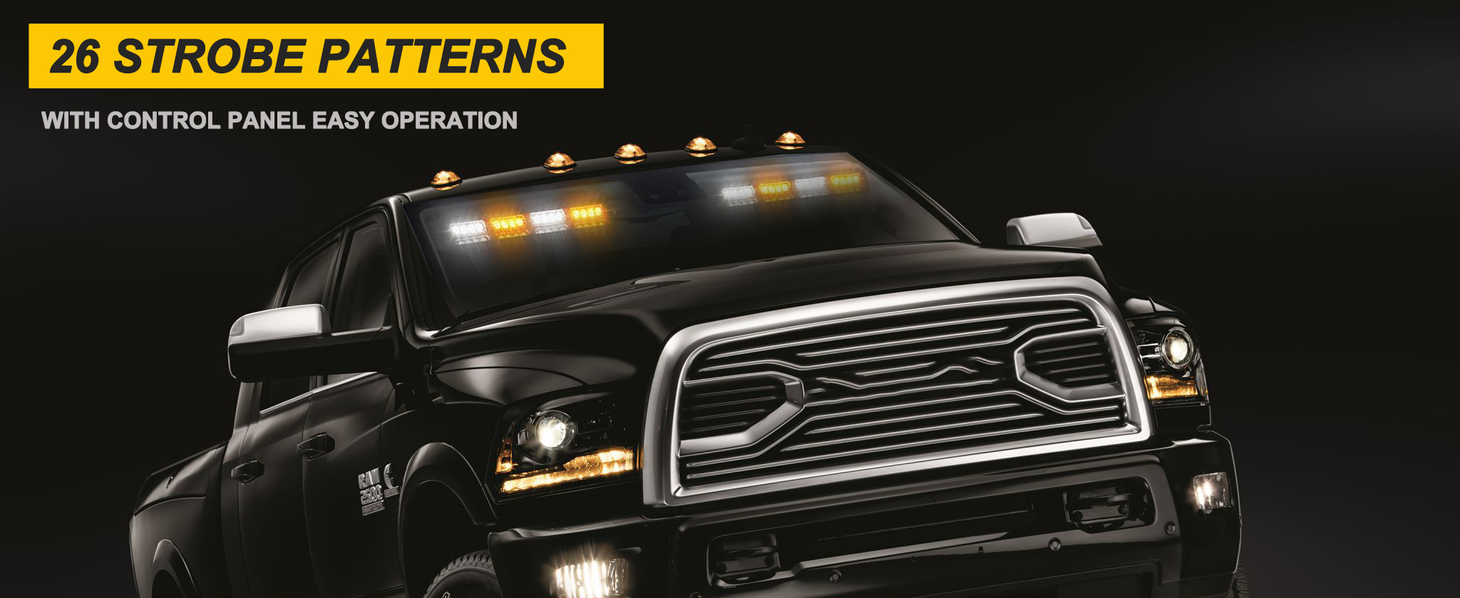 سطوع محسّن - تتميز مصابيح حاجب لوحة القيادة مقاس 2 × 14 بوصة بـ 32 مصباح LED عالي الكثافة. 26 نمط إضاءة، يندمج مع عدسة PMMA 5D، مما يجعلها أكثر سطوعًا من المصابيح الواقية الرخيصة الأخرى. زيادة سلامة القيادة بشكل كبير.