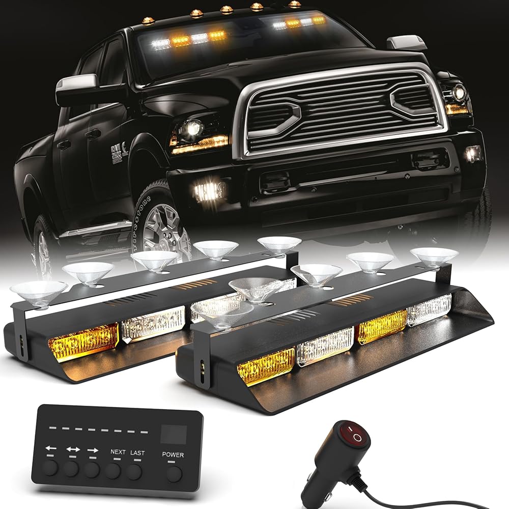 تطبيق واسع - يمكن استخدام ضوء الطوارئ للزجاج الأمامي باللون الأبيض الكهرماني كأضواء لإنفاذ قانون الشرطة أو لأغراض تحذير السلامة. إنه رائع لشاحنات البناء ومركبات الطوارئ وجرارات المحراث وما إلى ذلك.