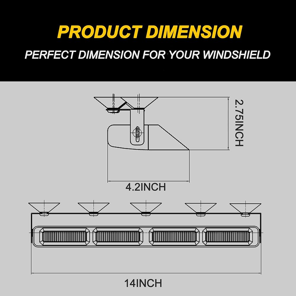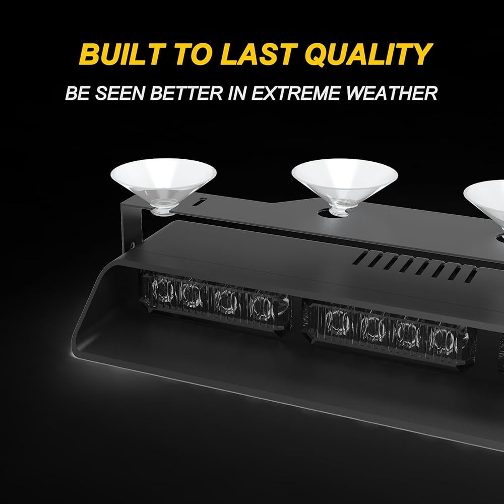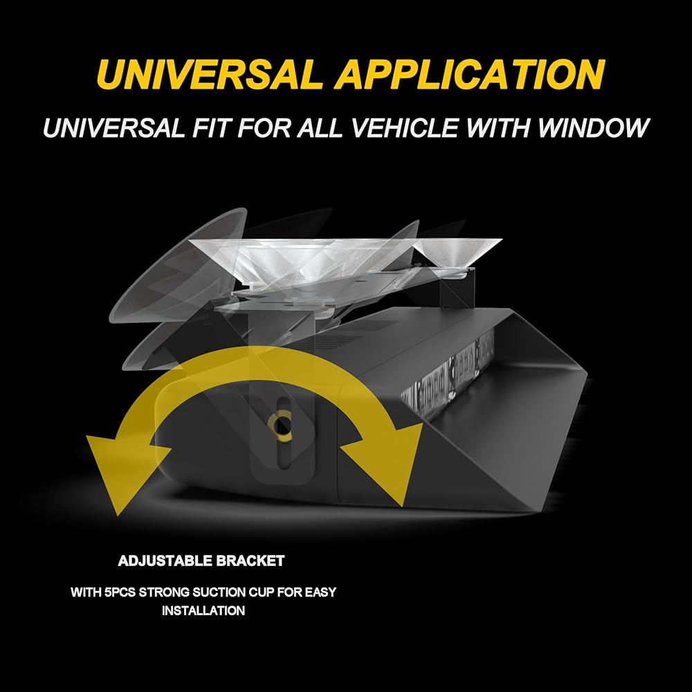 تركيب سهل - يأتي ضوء التحذير من اندفاعة الزجاج الأمامي مع أقواس قابلة للتعديل وأكواب شفط. يمكنك بسهولة تركيب الأضواء الواقية على الزجاج الأمامي أو الخلفي.
