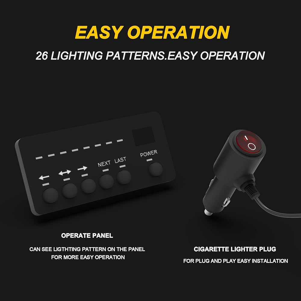تشغيل سهل - على عكس المصابيح الواقية الأخرى التي تعمل بواسطة ولاعة السجائر، تأتي مصابيح لوحة القيادة هذه مع لوحة تحكم لسهولة التشغيل. يمكنك وضع اللوحة في مكان يسهل الوصول إليه.