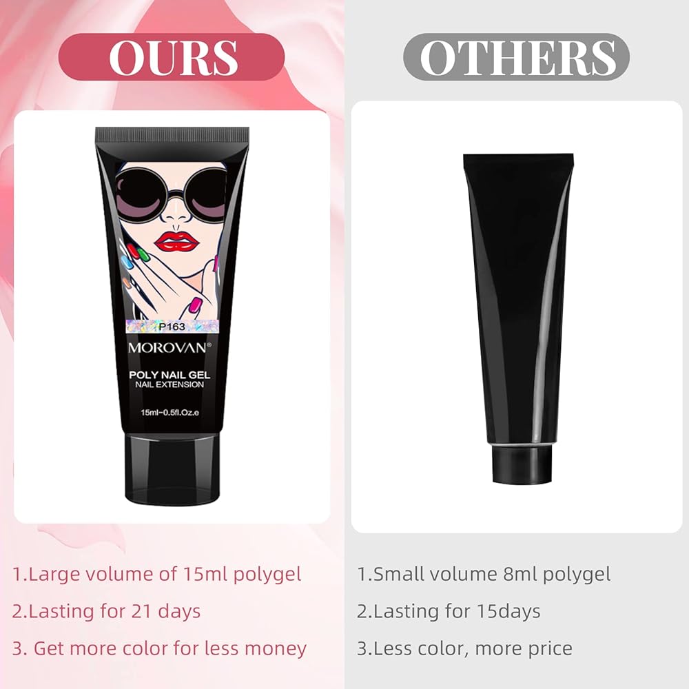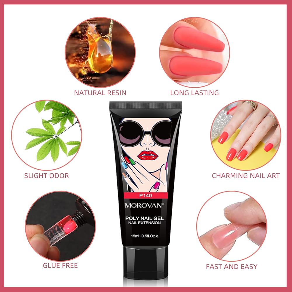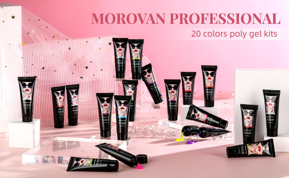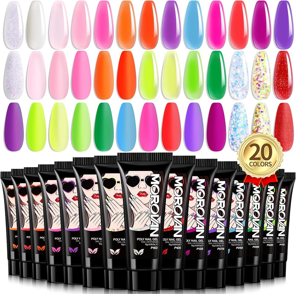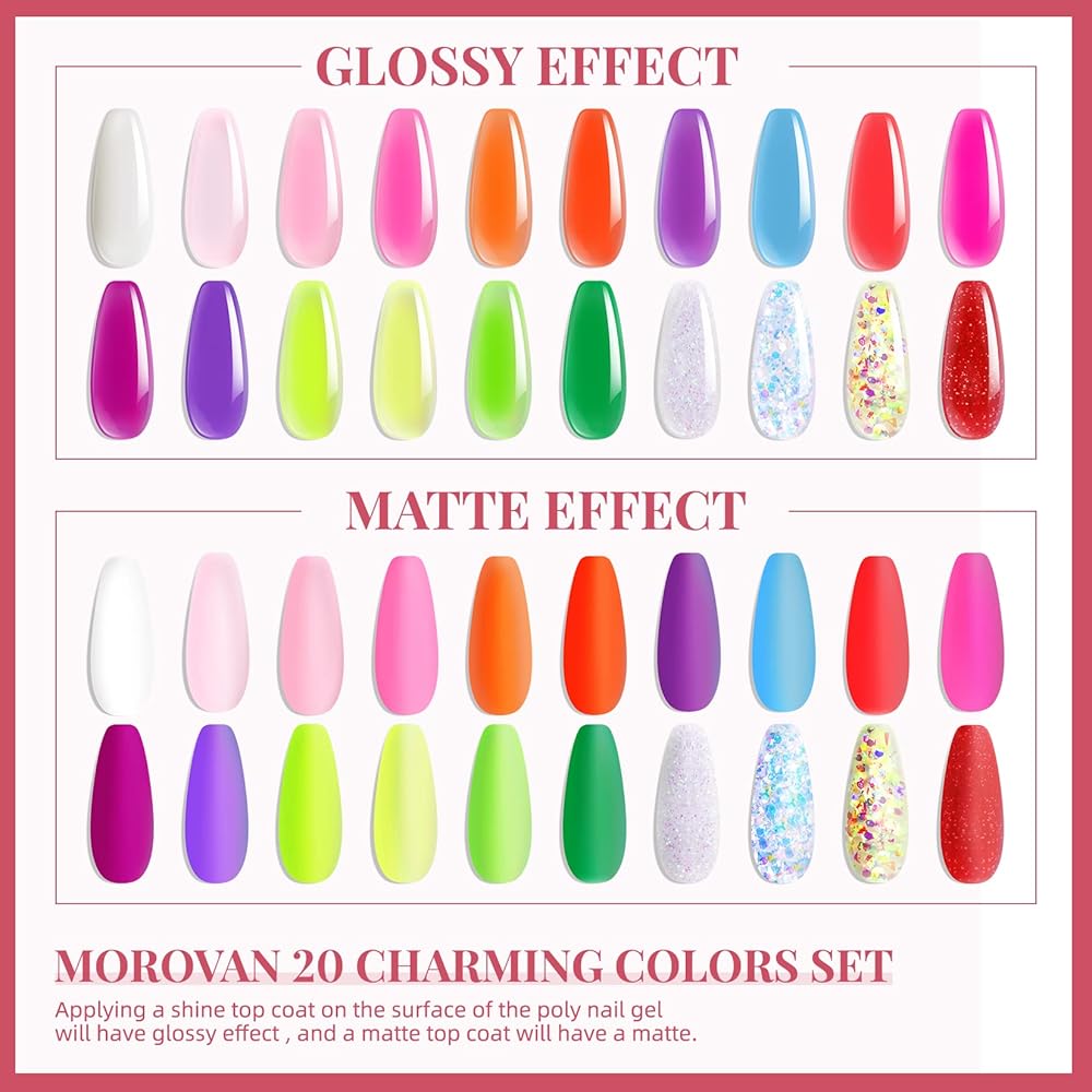 موروفان مجموعة وصلات اظافر جل بولي جل مكونة من 20 لون، مجموعة اظافر من جل بولي جل للاظافر الفنية للمبتدئين، مجموعة مانيكير لتعزيز الاظافر في المنزل (20 قطعة بولي جل بينك)