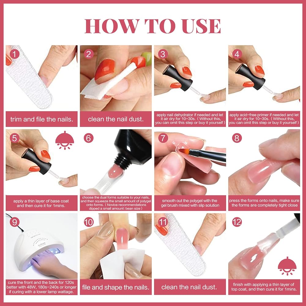 • 🧡تذكير لمجموعة أظافر جل البولي من أجل التصاق أفضل لمجموعات جل البولي، يمكنك استخدام مجفف الأظافر وبرايمر الأظافر الخالي من الأحماض ومبرد وصقل وتنظيف أظافرك قبل البدء في إنشاء مانيكير مع مجموعة جل أظافر بولي أثناء التصنيع، تحتاج إلى مصباح أظافر للمعالجة، تحتاج إلى أكثر من مصباح أظافر 48 واط لمدة 120 إلى 180 ثانية، مما يساعد على تكوين أظافرك الجل بشكل أسرع. ستستمر الأظافر لفترة أطول.