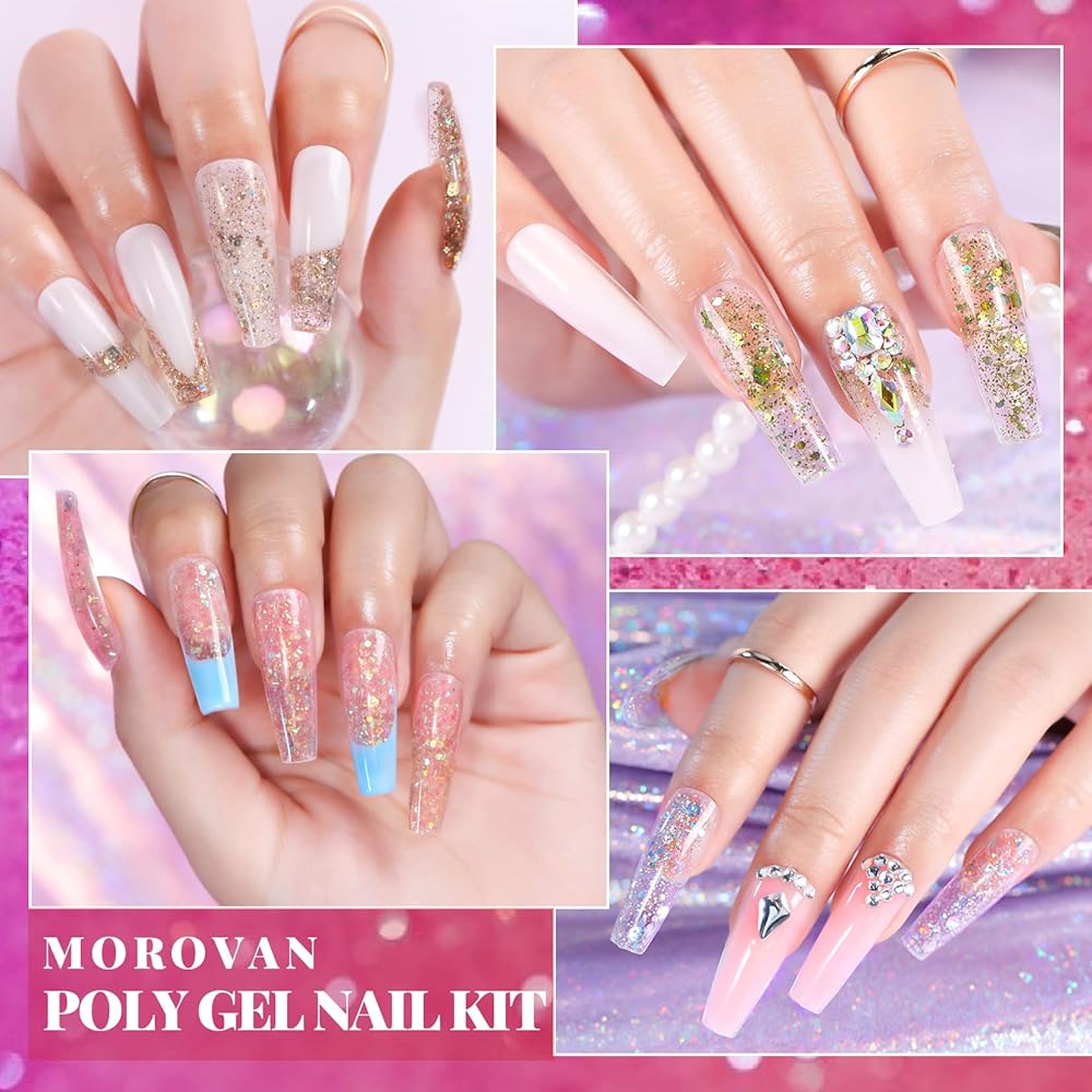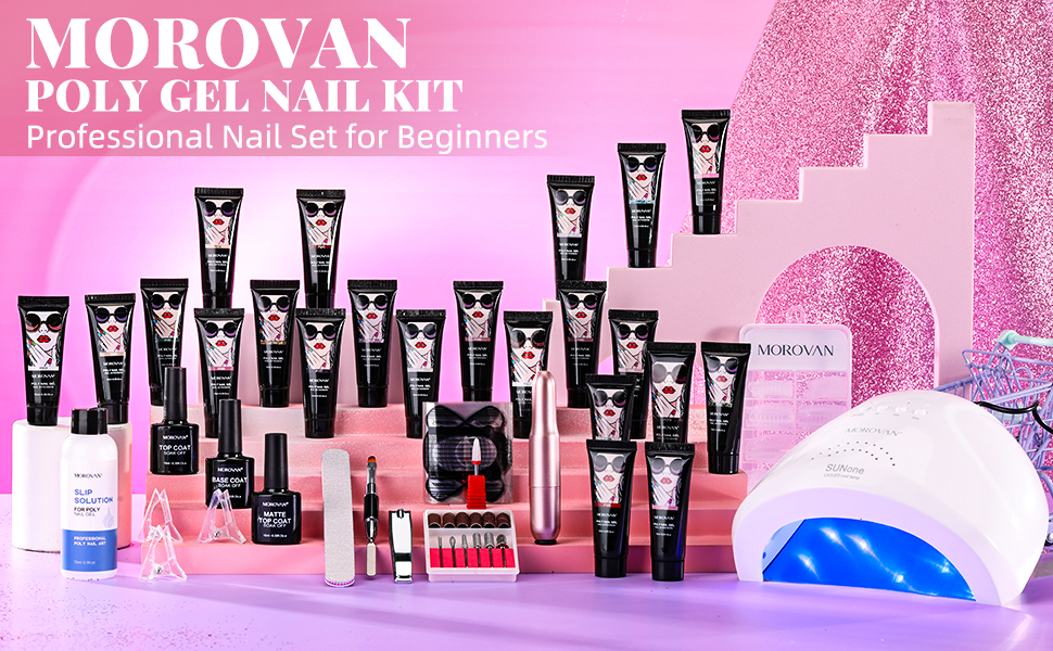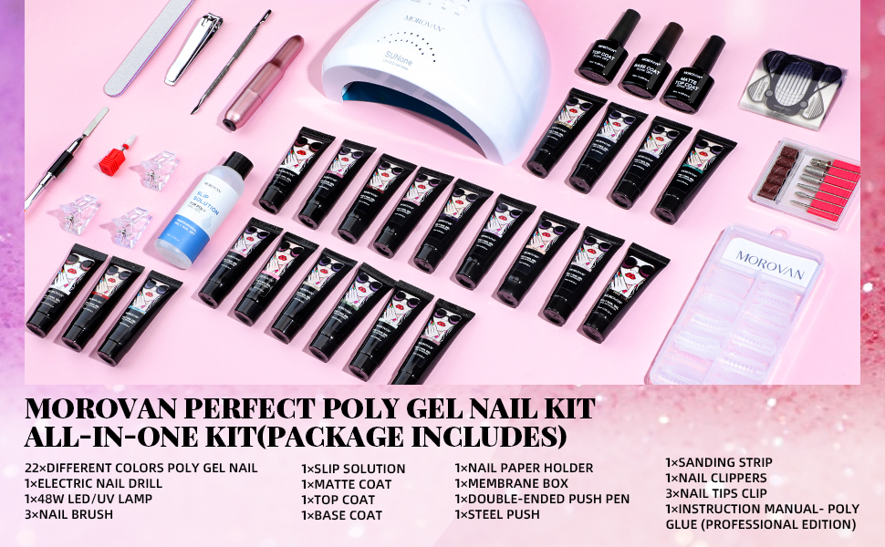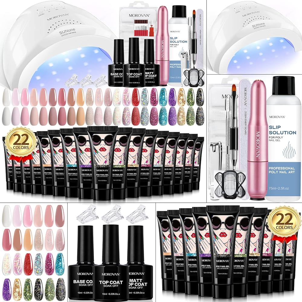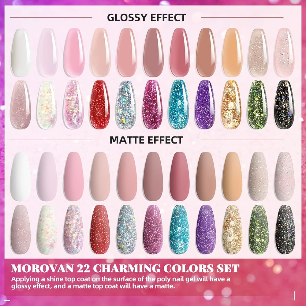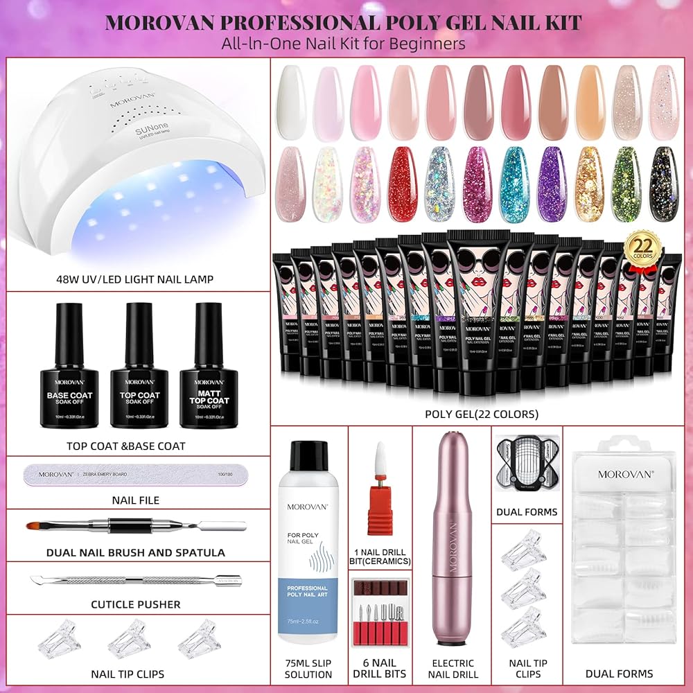 موروفان مجموعة طلاء اظافر جل بولي مع مثقاب مع كل شيء يمكنك صنعه بنفسك لتزيين الاظافر في المنزل من 22 لون