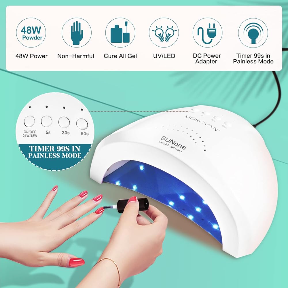 • ❤مصباح أظافر ممتاز بالأشعة فوق البنفسجية LED بقدرة 48 وات - مجموعة أظافر جل بولي موروفان مع ضوء LED للأشعة فوق البنفسجية. 8 قطع من جل وصلات الأظافر الملونة يمكن معالجتها بسرعة باستخدام مجفف الأظافر الفاخر هذا. إنها مناسبة لجميع أنواع البولي جل وطلاء الأظافر الجل ومجفف إعداد الأظافر وطلاء الأظافر والطبقة الأساسية والطبقة العلوية وما إلى ذلك. يتم تقصير متوسط ​​وقت المعالجة الخاص بك بنسبة 50% مع ضوء الأظافر هذا. مثالية لك لإنشاء مجموعات جل الأظافر من البوليستر في المنزل أو الصالون مع مجموعة جل الأظافر المصنوعة من البوليستر.