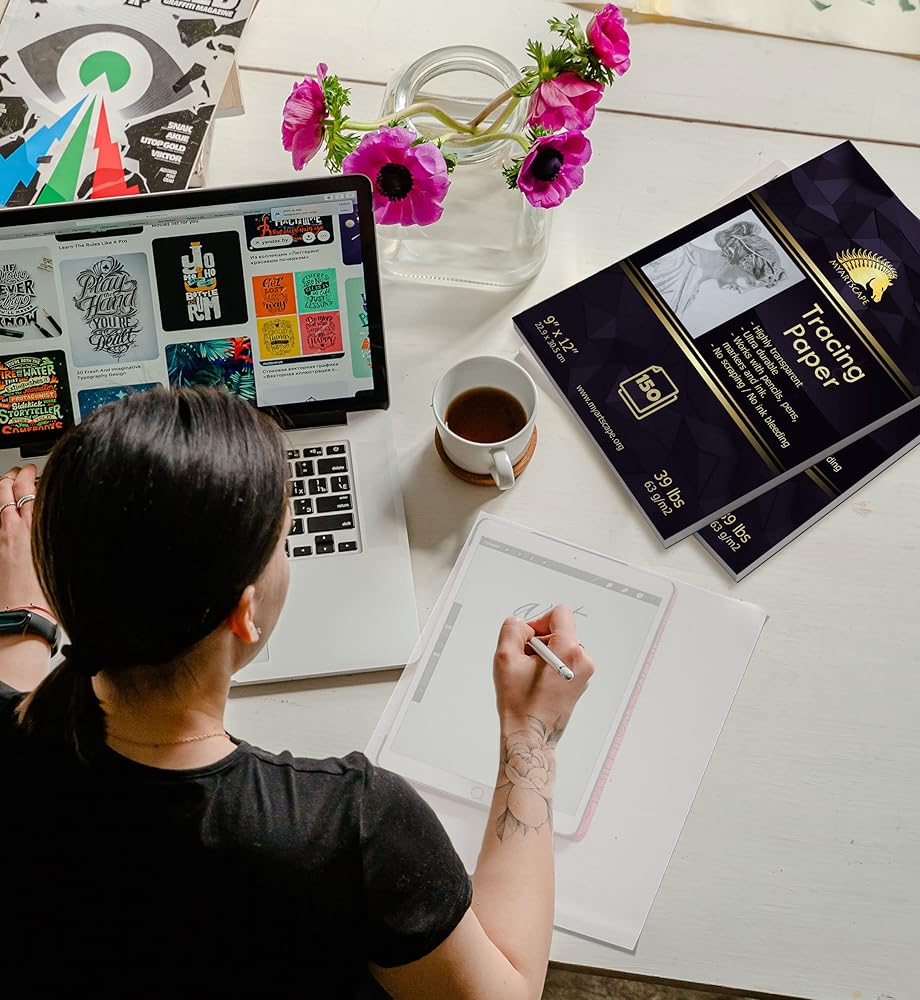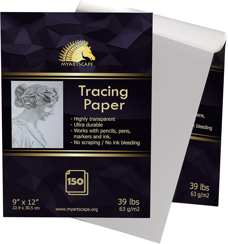 - لوحة ورق التتبع - 150 ورقة من ورق التتبع بجودة الفنانين مقاس 9 × 12 بوصة بوزن 39 رطل/63 جرامًا للمتر المربع