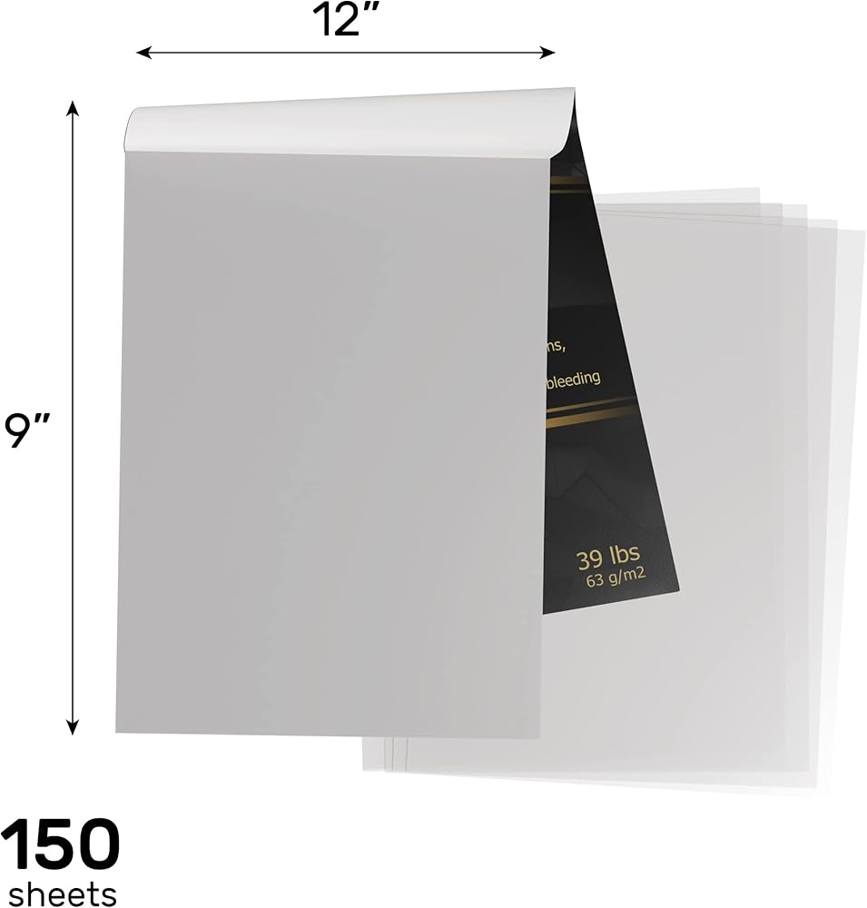 وسادة ورق التتبع MyArtscape - 39 رطل - 9 بوصة × 12 بوصة - 150 ورقة شفافة - جودة الفنان