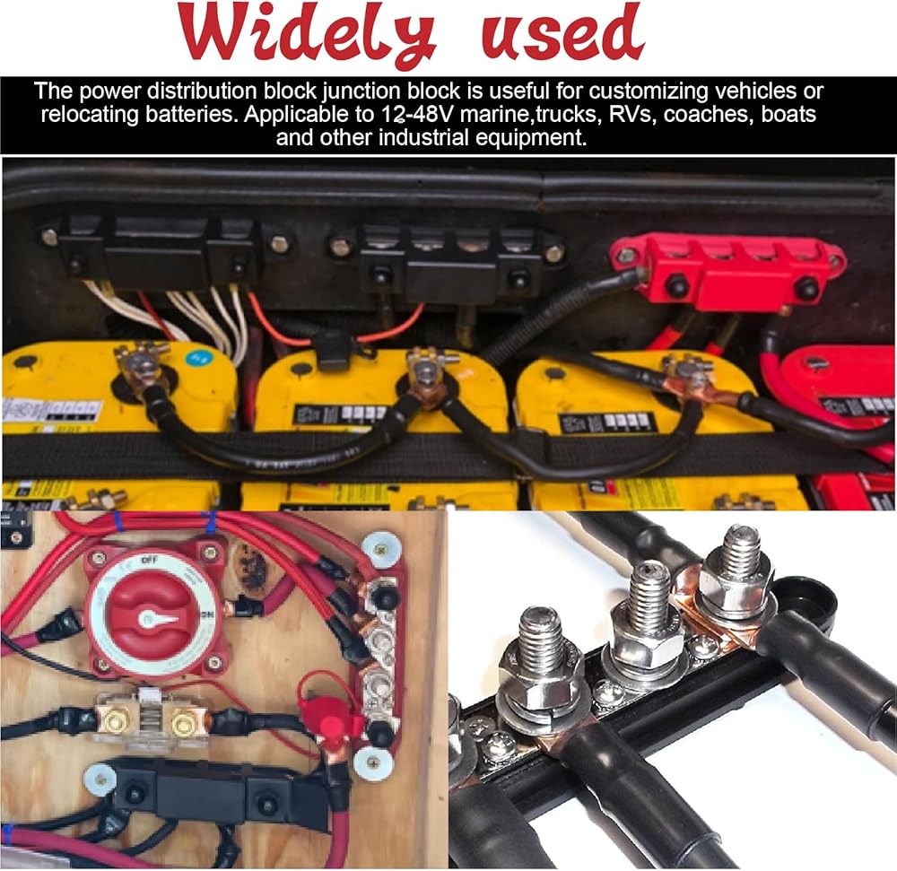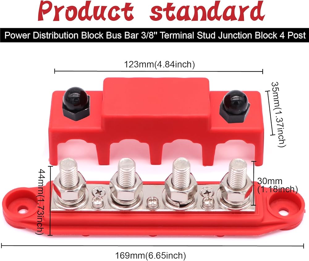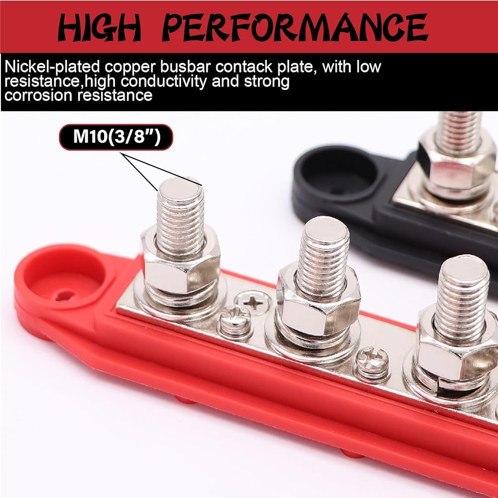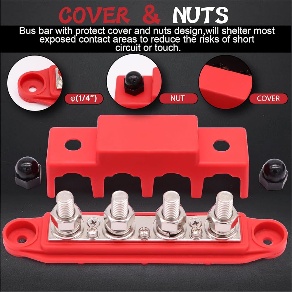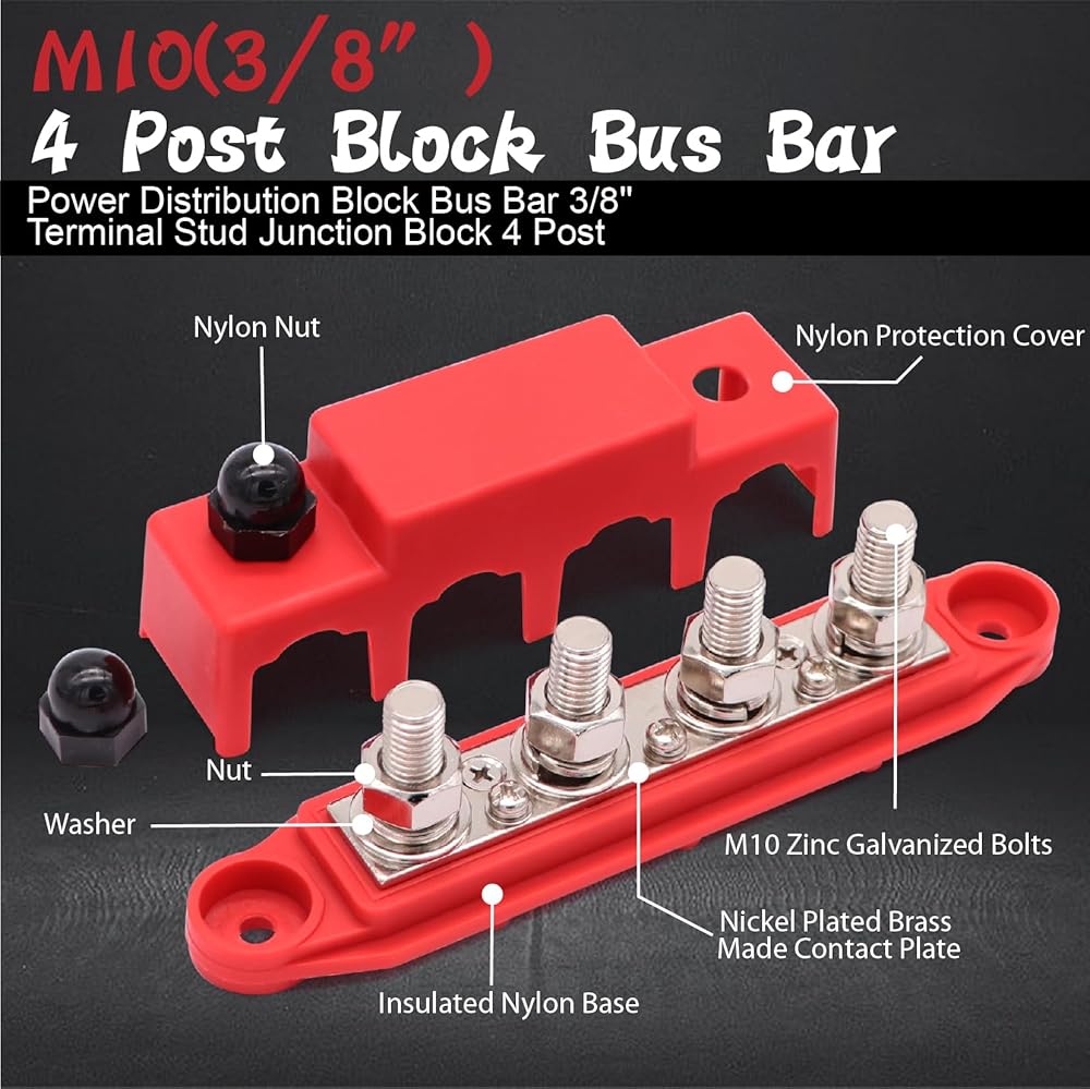 TuoLauthon 250A 4 Post Bus Bar كتلة توزيع طاقة البطارية مع 4 × 3/8 بوصة (M10) ترصيع طرفية البطارية 14 قطعة 3: 1 مجموعة أنابيب الانكماش الحراري للأسلاك الشمسية للسيارات البحرية RV (أحمر وأسود)