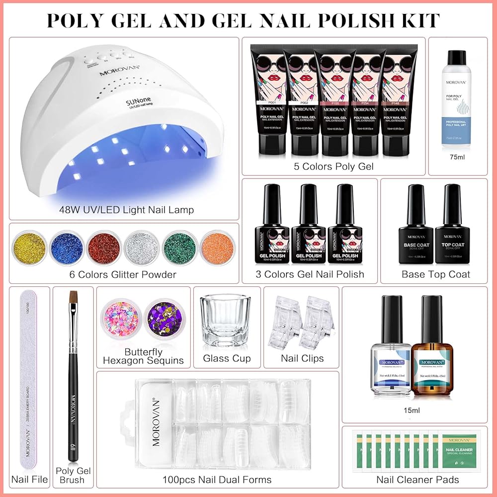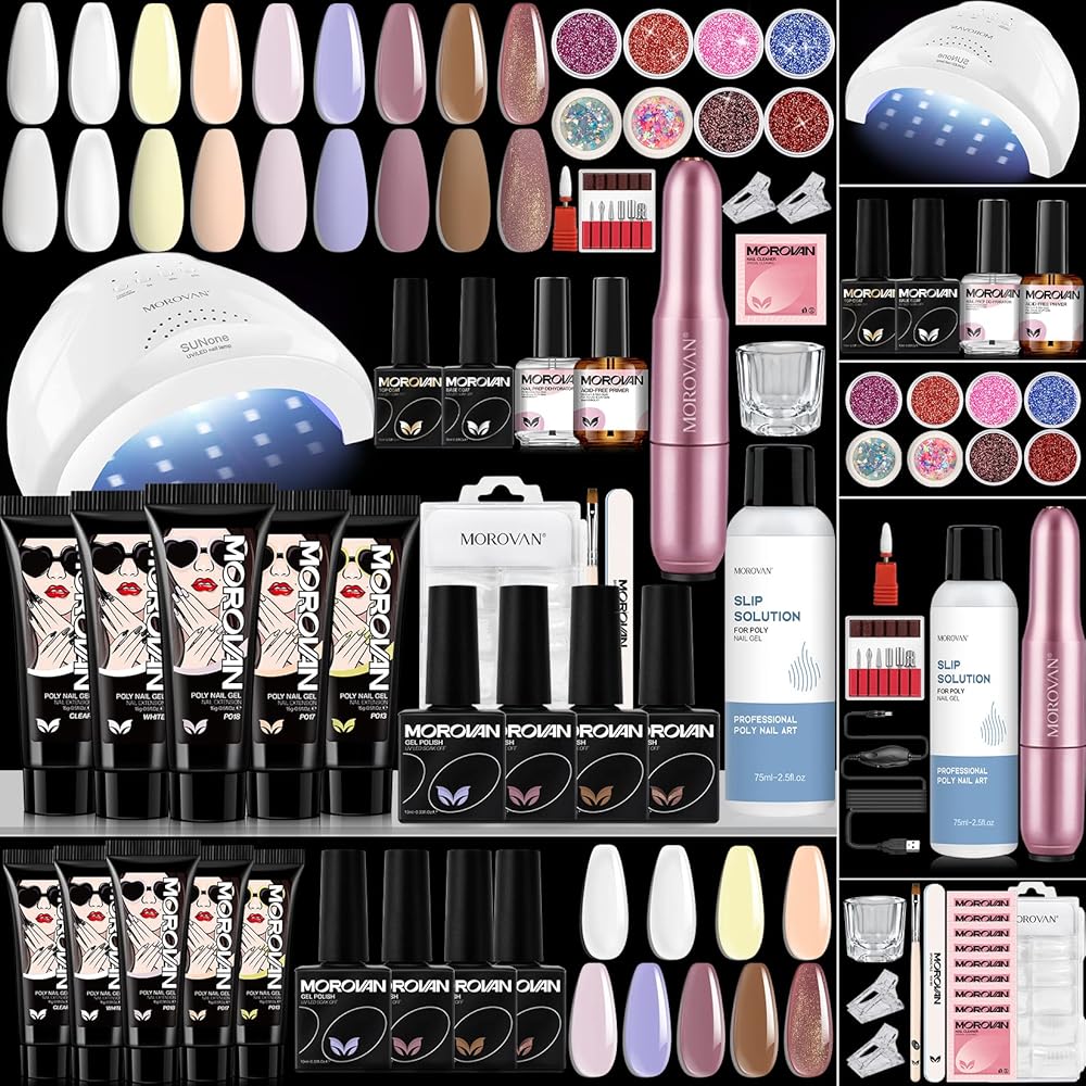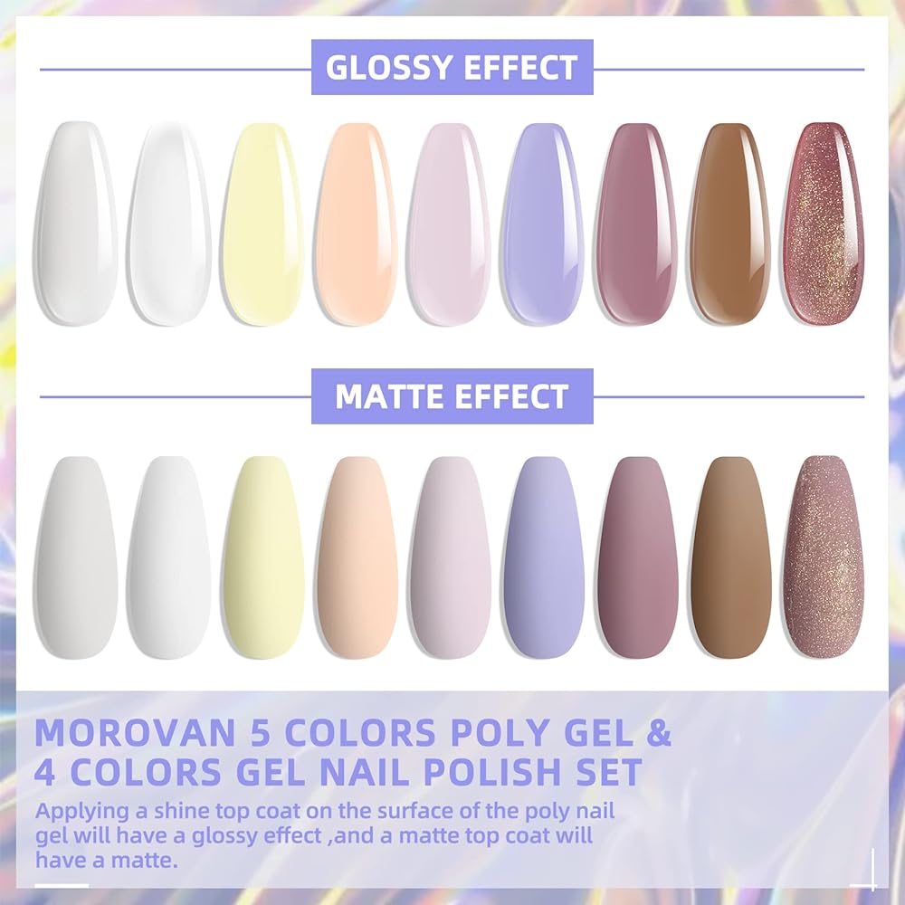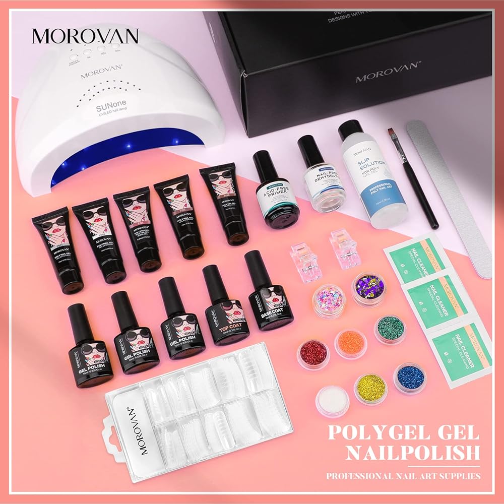 🧡Morovan Poly Gel Nail Kit مع مصباح الأشعة فوق البنفسجية - مجموعة جل الأظافر من البوليستر للمبتدئين في كل شيء. مجموعة من 8 ألوان من جل الأظافر وطلاء الجل، و5 جل لتمديد الأظافر و3 ألوان من طلاء الأظافر الجل. وغيرها من لوازم فن الأظافر لأظافر البولي جل التي تصنعها بنفسك. يمكنك تمديد أظافرك باستخدام البولي جل، ثم ضعي جل الأظافر الملون للحصول على مجموعة من البولي جل لتطويل الأظافر وتلوينها.