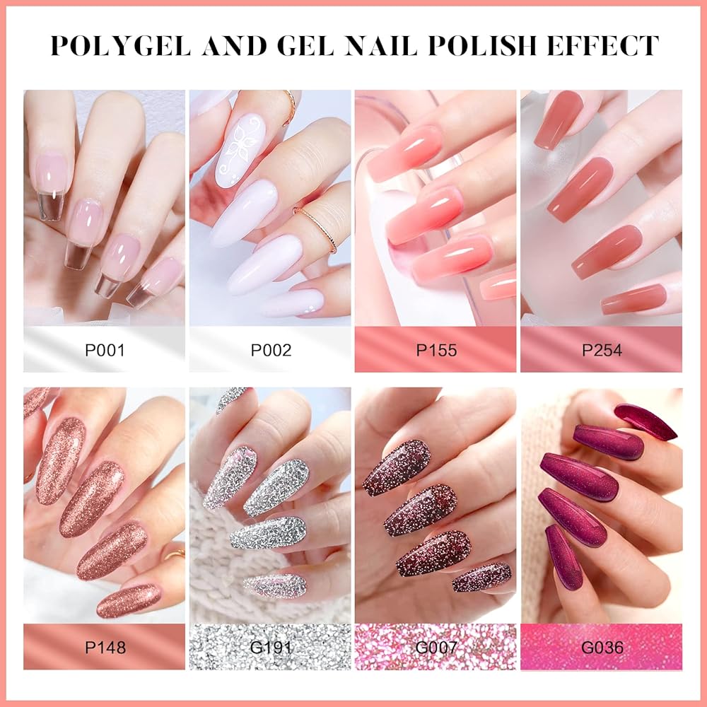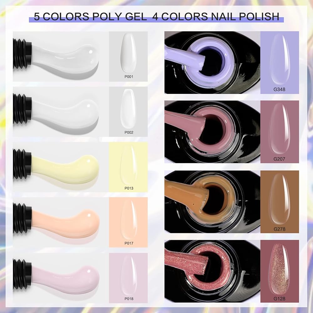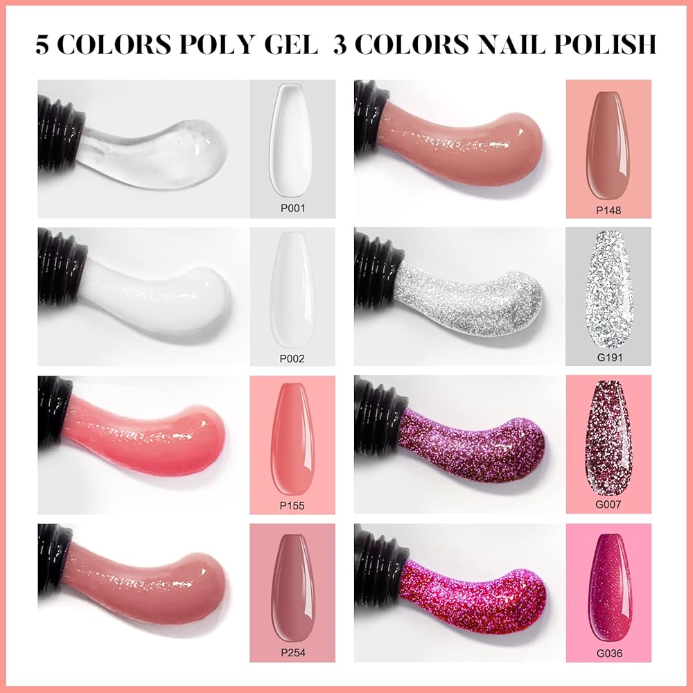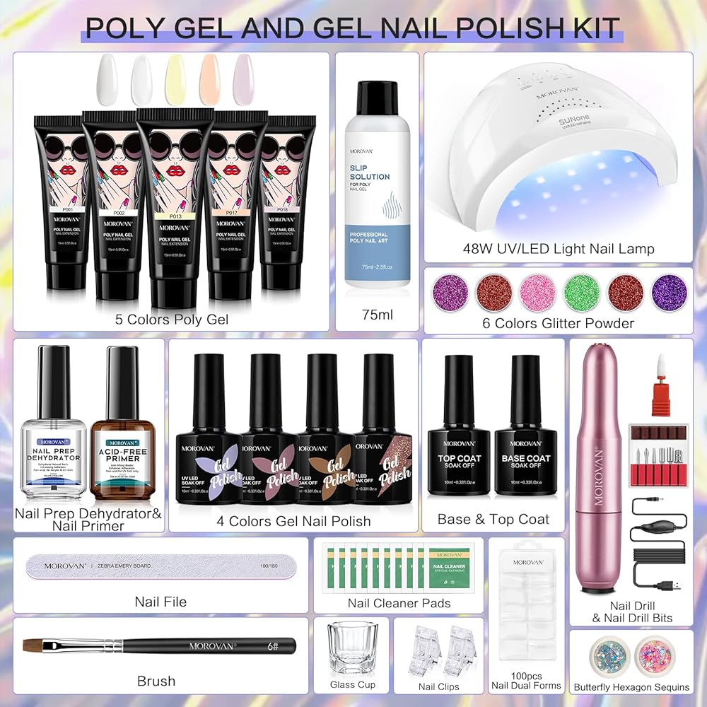 🧡Morovan Poly Gel Nail Kit مع مصباح الأشعة فوق البنفسجية - مجموعة جل الأظافر من البوليستر للمبتدئين في كل شيء. مجموعة من 8 ألوان من جل الأظافر وطلاء الجل، و5 جل لتمديد الأظافر و3 ألوان من طلاء الأظافر الجل. وغيرها من لوازم فن الأظافر لأظافر البولي جل التي تصنعها بنفسك. يمكنك تمديد أظافرك باستخدام البولي جل، ثم ضعي جل الأظافر الملون للحصول على مجموعة من البولي جل لتطويل الأظافر وتلوينها.