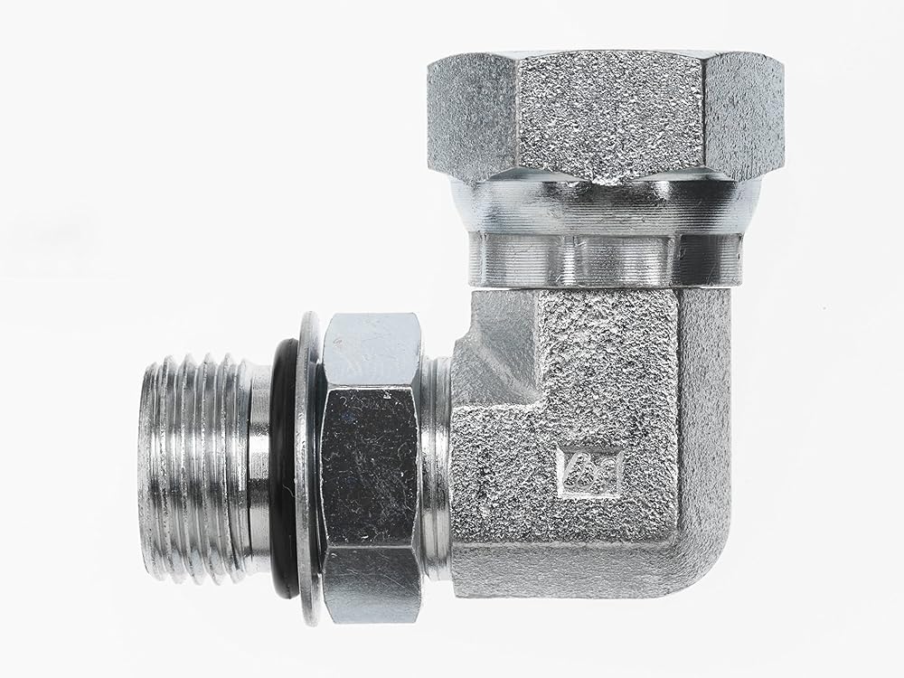 Brennan Industries 6901-04-06-NWO-FG تركيب أنبوب الكوع من الفولاذ المطروق 90 درجة، 7/16 بوصة - 20 SAE ORB × 3/8 بوصة - 18 خيط NPSM، 1/4 بوصة حلقة دائرية قابلة للتعديل للذكور × 1/ 4 بوصات دوارة NPTF أنثى