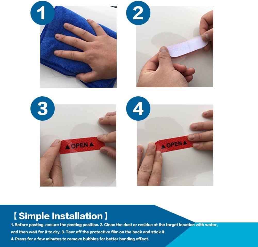 [عالي الجودة] الملصق العاكس للباب مصنوع من مادة PET عالية الجودة، وهي مقاومة للتآكل عالية الجودة، ومقاومة للماء، وواقي من الشمس، ومقاومة للمطر ومتينة. يمكن استخدام هذه الملصقات لفترة طويلة وليس من السهل أن تسقط.