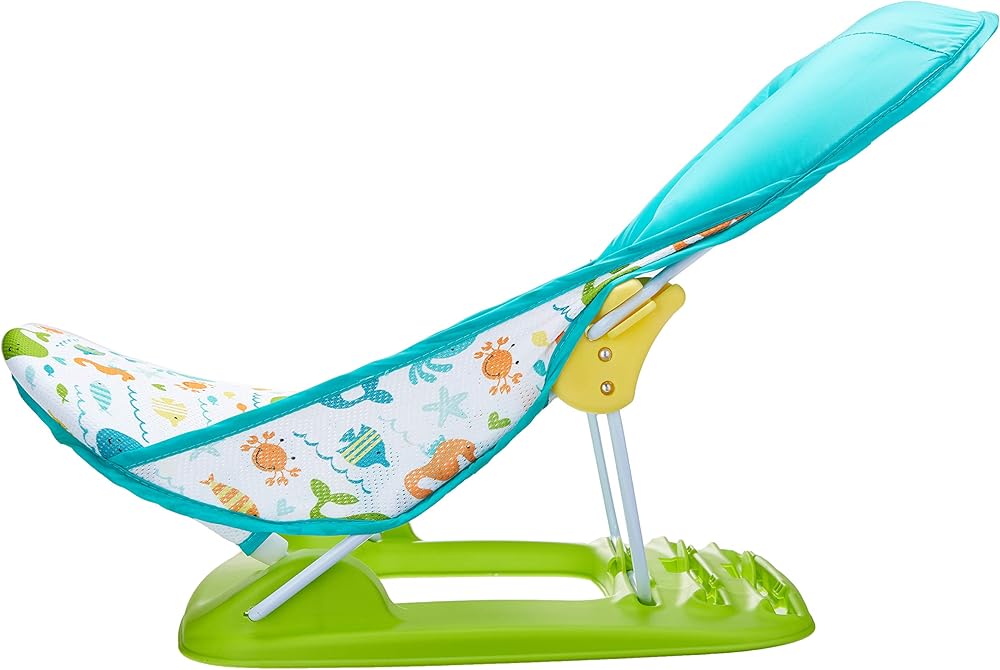 3-Position recline, for child's comfort^For use in the sink or adult bath tub^Head support cradles baby's head^Folds compact for storage and travel^Machine washable fabric