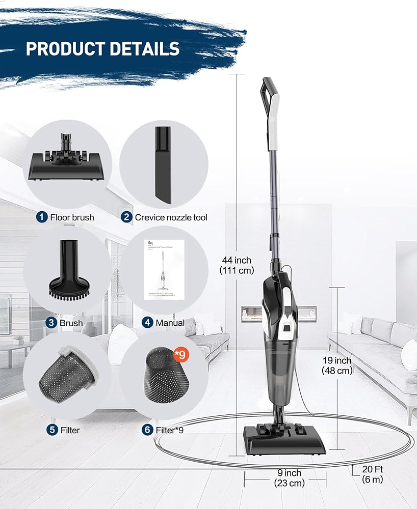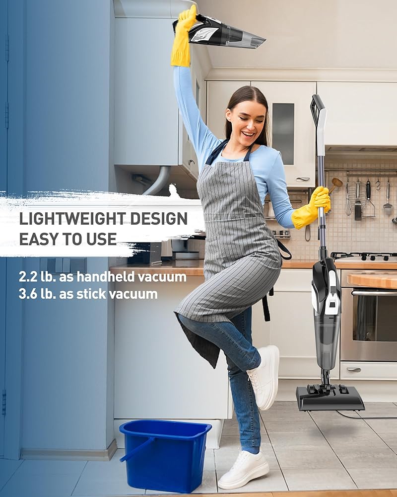 • 【خفيفة الوزن وسهلة الاستخدام】مكنسة كهربائية سلكية بوزن 2.2 رطل فقط كمكنسة كهربائية محمولة و3.6 رطل كمكنسة كهربائية لاصقة. سهل الدفع بيد واحدة وسهل الاستخدام. مكنسة كهربائية صغيرة مع كابل بطول 20 قدم، يمكنك اصطحابها معك أينما تريد تنظيفها. مجرد سد في ويعمل. لا داعي للقلق بشأن نفاد الطاقة.