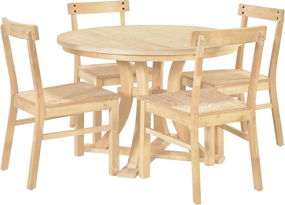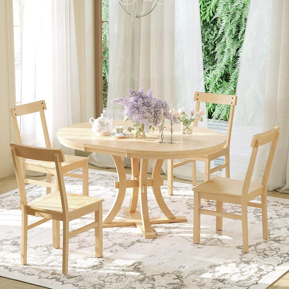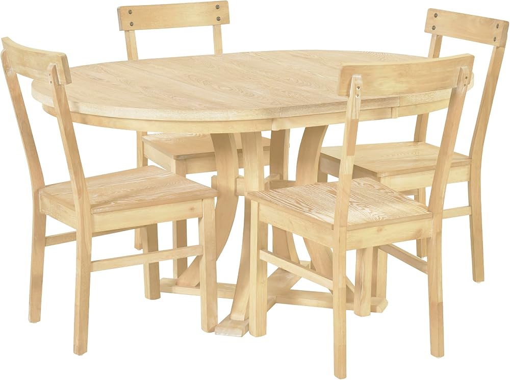 مجموعة حجرة طعام صغيرة مكونة من 5 قطع من HAUSHECK، أثاث طاولة مطبخ ريفي لغرفة الطعام، توفير مدمج مع سطح طاولة قابل للتمديد، 4 كراسي من الخشب الصلب، مثالية للمساحة الصغيرة، طبيعية