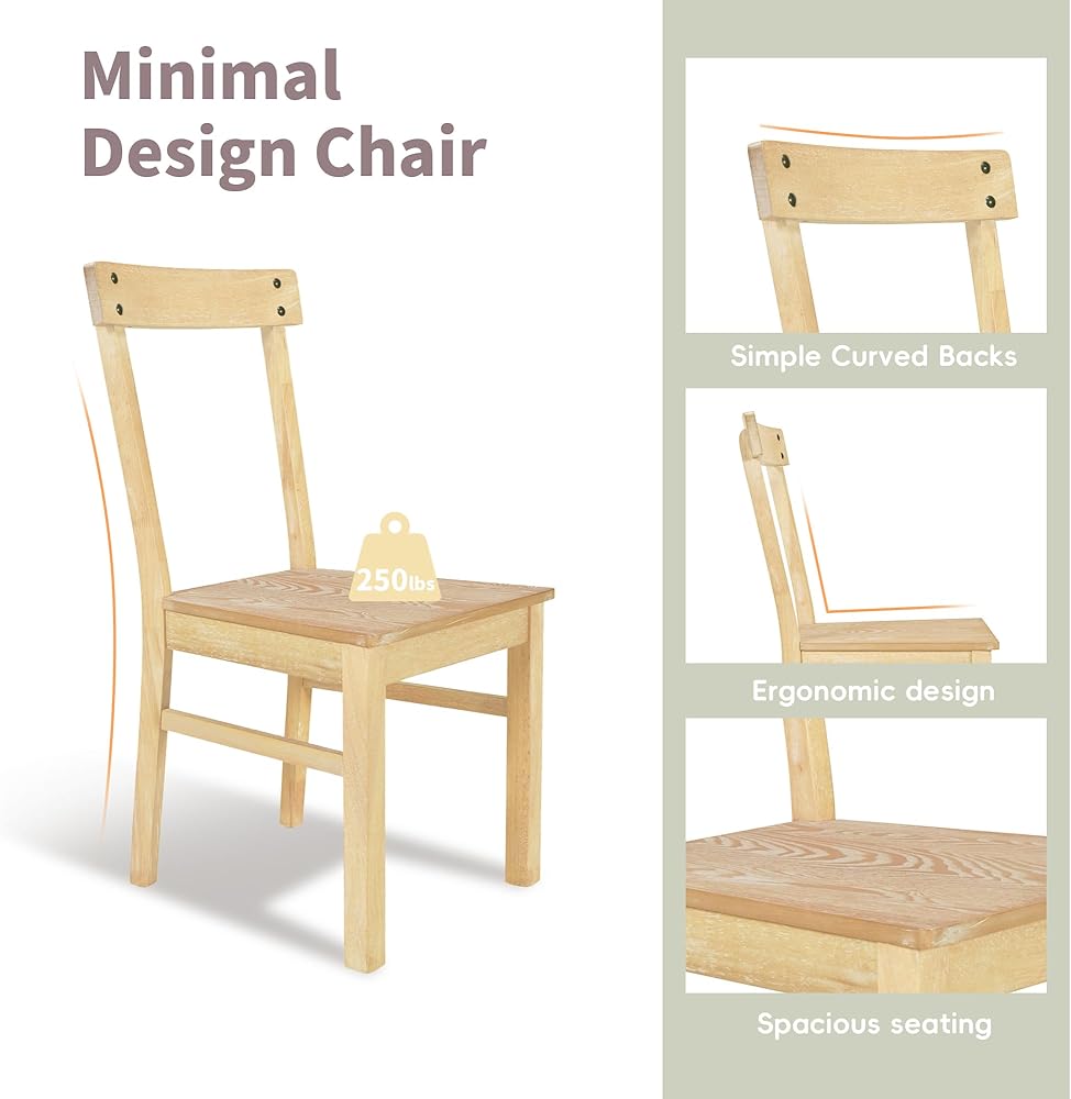 💕💕[Solid Wood Framework]Crafted with precision, this dining set features all table legs and chairs fashioned from rubberwood, guaranteeing longevity and robustness. The tabletop, crafted from premium MDF, is adorned with a natural textured China Ash veneer, infusing an air of opulence into any dining space. With a weight capacity of up to 250lbs, both the table and chairs provide a steadfast and secure dining experience, marrying durability with exquisite design.