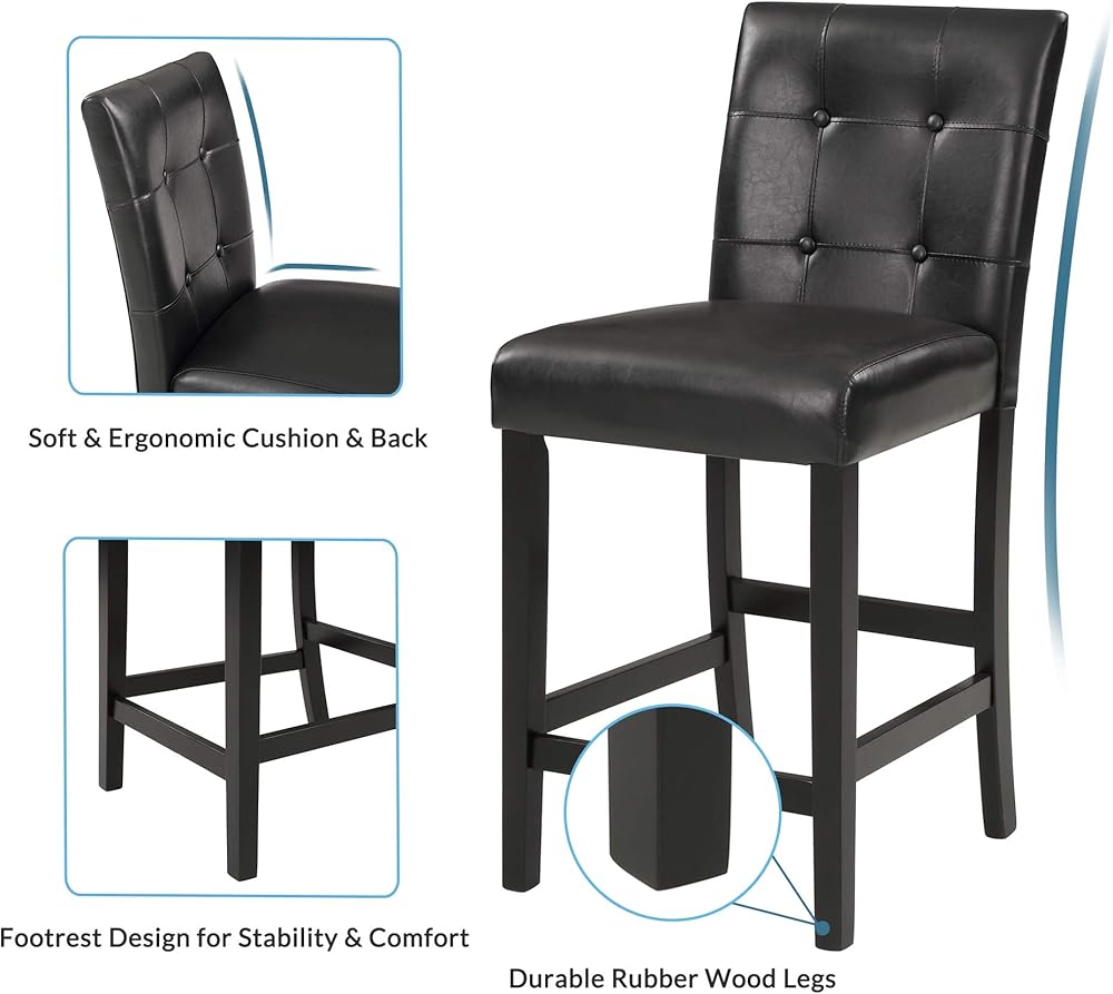 • 💕💕[Comfort 4 PU Leather-Upholstered Chairs] Both the seat cushion and the back of this black wooden dining set are padded in highly elastic sponge and tufted PU leather upholstery, it also feature footrests for upgraded comfort.