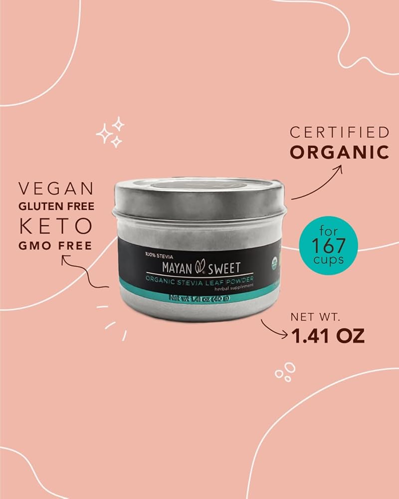 مسحوق أوراق ستيفيا العضوية، 1.40 أوقية، حلوى المايا