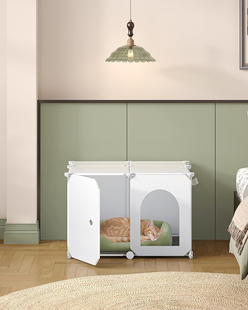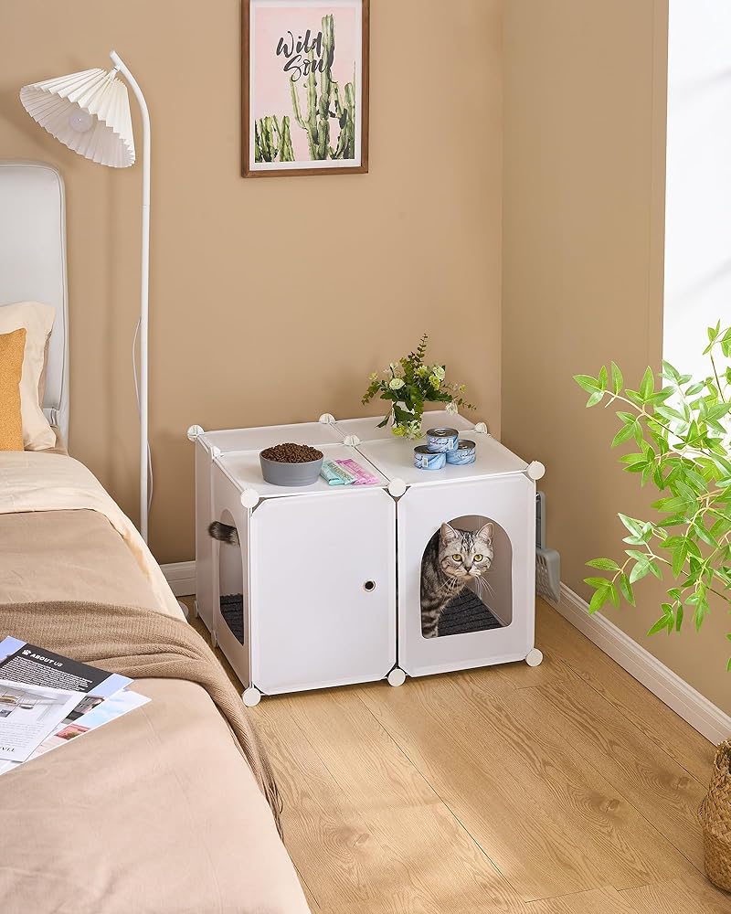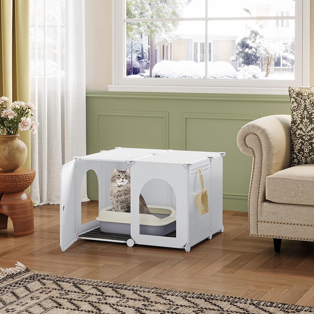 【يناسب صناديق الفضلات الأكبر حجمًا】حجم كل صندوق للقطط هو 23.7 × 18.5 × 15.8 بوصة، وهو مناسب لمعظم صناديق فضلات القطط. يمكن أن تكون خزانة صندوق فضلات القطط المثالية بمثابة مرحاض للقطط أو استكمال منزل القطط، مما يمنح القطط منزلًا مريحًا؛ تكمل الأبواب الخارجية والأبواب المقوسة الأنيقة ديكور منزلك.