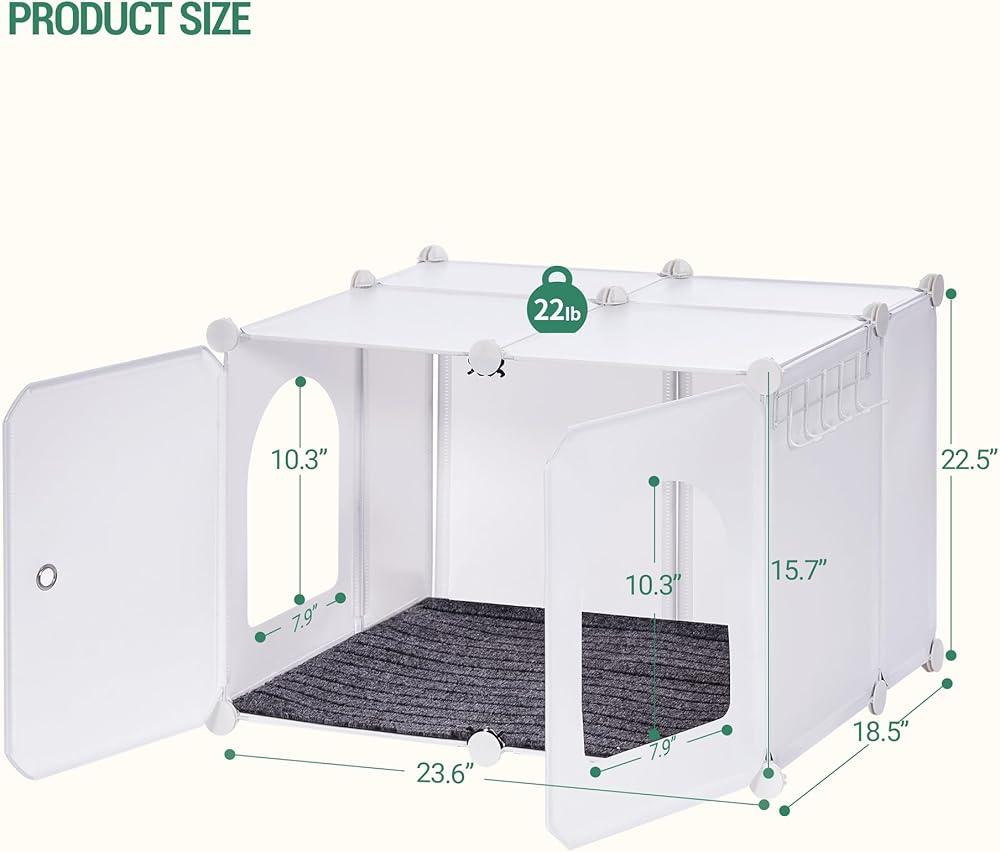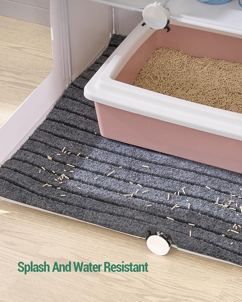 【مقاوم للماء والرذاذ】 بالإضافة إلى اللوحة السفلية للصندوق، يأتي صندوق فضلات القطط هذا أيضًا مع حصيرة أرضية مقاومة للماء ومانعة للتسرب. لن يتسرب فضلات القطط وبول القطط إلى الأرض ولن يسبب ضررًا للأرضية، وسهل التنظيف للغاية.