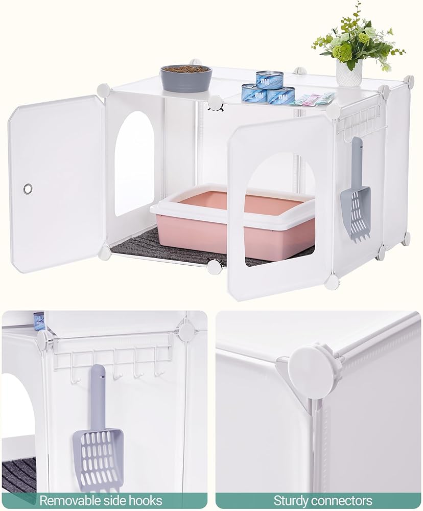 【خطافات إضافية】مع الأخذ في الاعتبار راحة التنظيف، قمنا بتجهيز خطاف لك لتعليق أدوات التنظيف الخاصة بك والحفاظ على صندوق الفضلات نظيفًا وعديم الرائحة حتى تتمكن قطتك من حب منزلها.