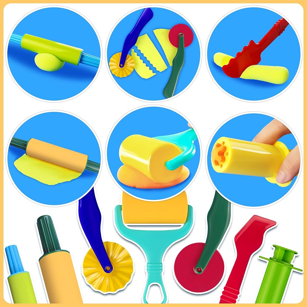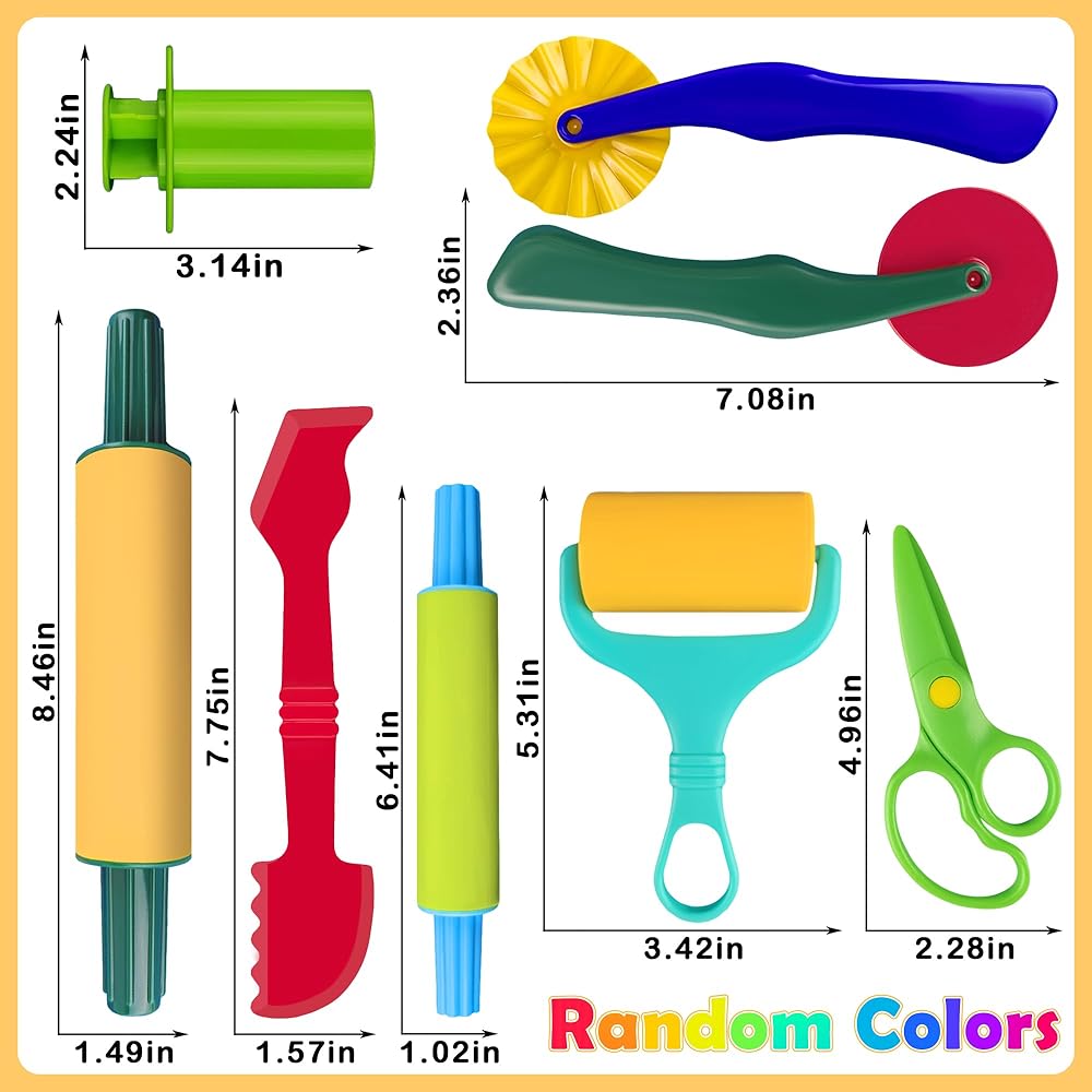 أدوات معجون اللعب: تأتي مجموعة أدوات معجون اللعب هذه مع أدوات معجون لعب أساسية مكونة من 6 قطع، وطاردات عجينة مكونة من 5 قطع بأنماط مختلفة. مقص معجون لعب. العمر الموصى به: 3 سنوات فما فوق