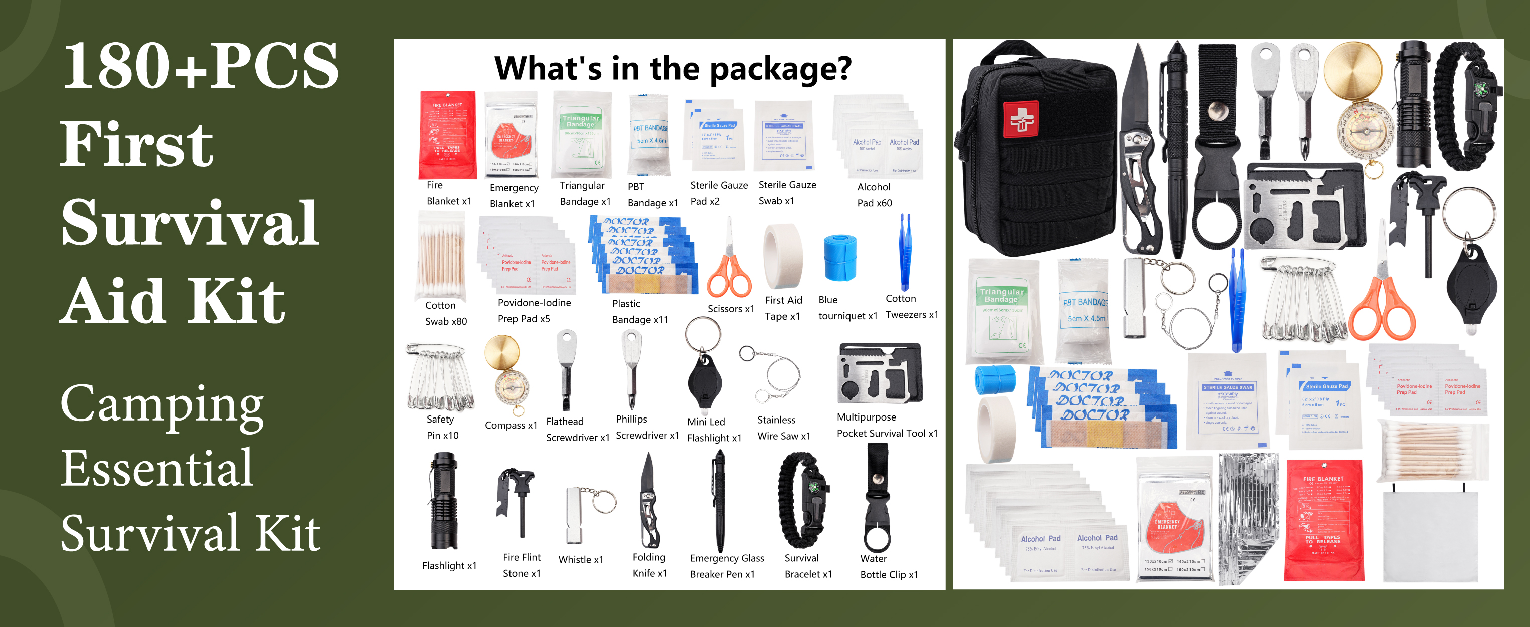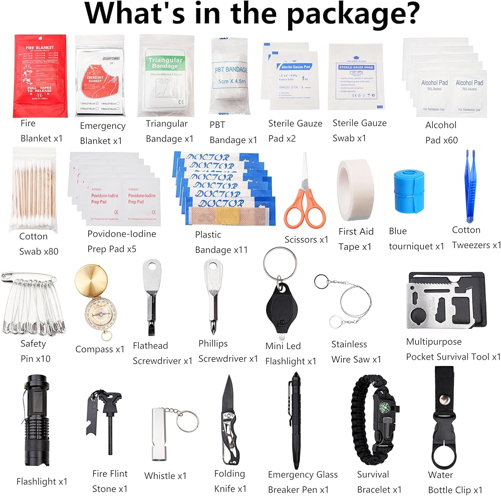 مجموعة أدوات النجاة للإسعافات الأولية متعددة الاستخدامات - مناسبة للمنزل، والسفر بالسيارة، والتخييم، والمشي لمسافات طويلة، وركوب الدراجات، وحقائب الظهر، وكذلك الحياة اليومية في المنزل والمكتب. يمكنه حماية سلامتك وعائلتك بشكل كامل.