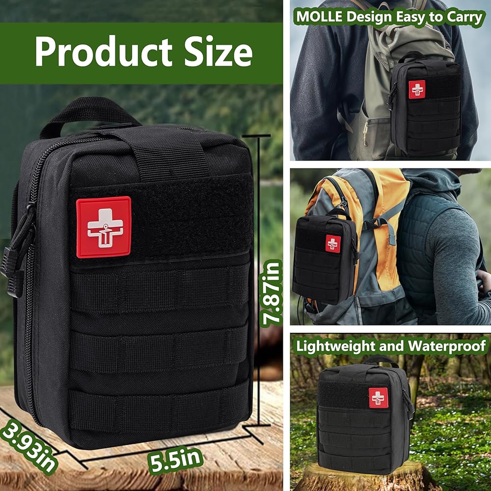 حقيبة MOLLE، متوافقة مع الحمل - حقيبة طبية MOLLE من الدرجة العسكرية، خفيفة الوزن ومقاومة للماء. داخل الحقيبة، مع ثلاث حجرات كبيرة والعديد من الأشرطة، يتم تخزين جميع معدات ومعدات النجاة بطريقة منظمة وسهلة العثور عليها، مما يجعل من السهل العثور على العناصر الضرورية في حالات الطوارئ. يتيح لك نظام MOLLE الموجود في الخلف أيضًا ربط المجموعة بسهولة بسترة تكتيكية أو حقيبة ظهر أو حزام.