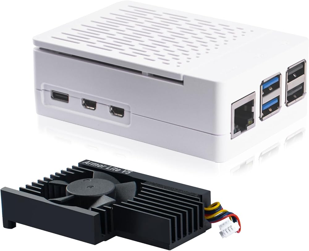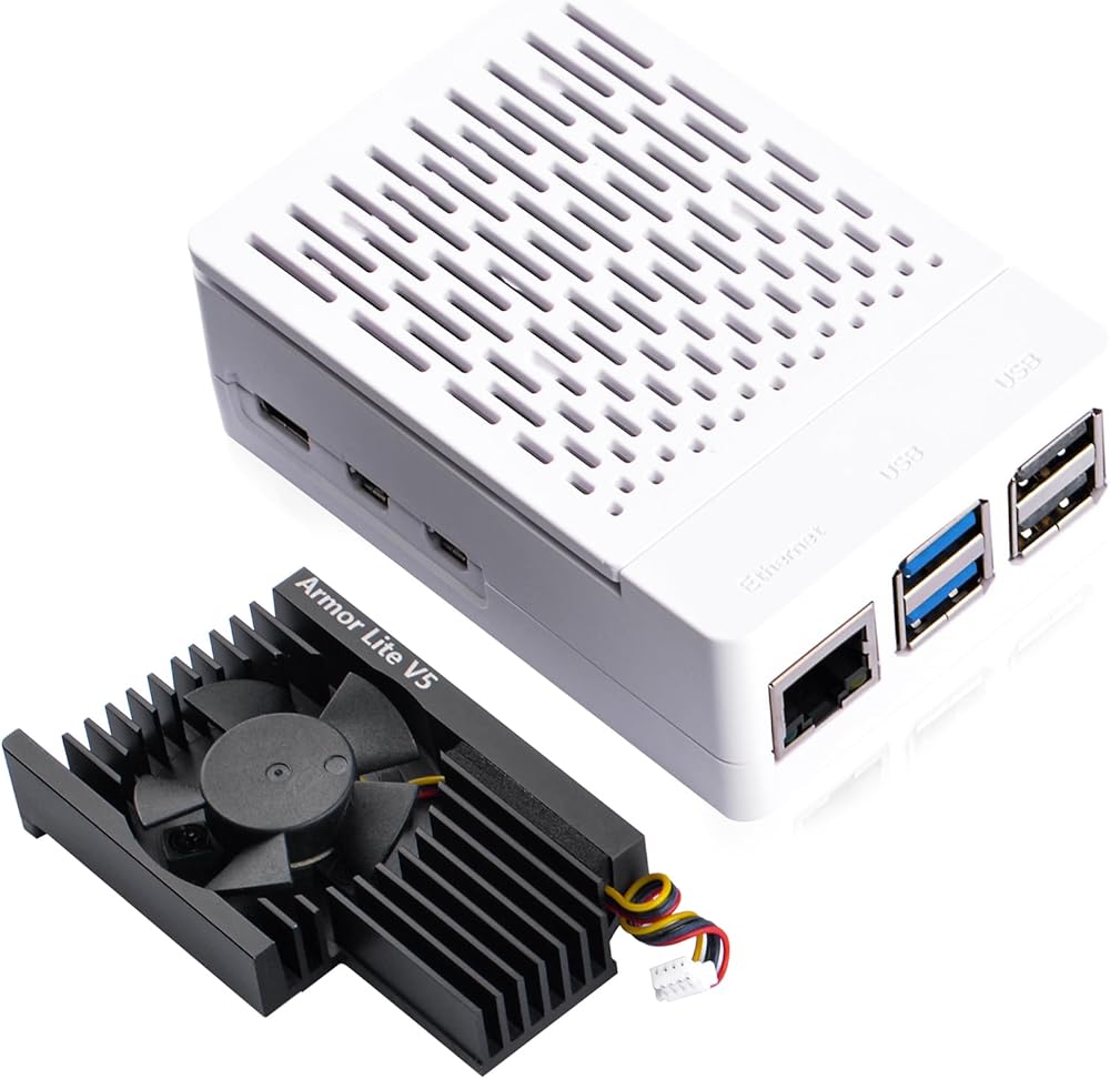 Armor Lite V5 Cooler - Pi 5 Armor Lite V5 Cooler combines aluminum heatsink and PWM fan. Different from ordinary fans, the PWM fan supports PWM speed regulation, which is perfectly compatible with Raspberry Pi OS. With 3510 ultra-quiet cooling fan and thermal pads, it can lower the temperature of Raspberry Pi Board quickly.