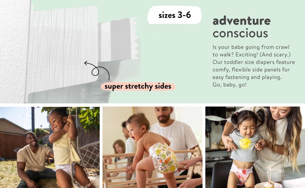 Stretchy Sides with flex + strength for those wiggles + wobbles; Quick Absorb Channels keep leaks under wraps for dryness on the fly