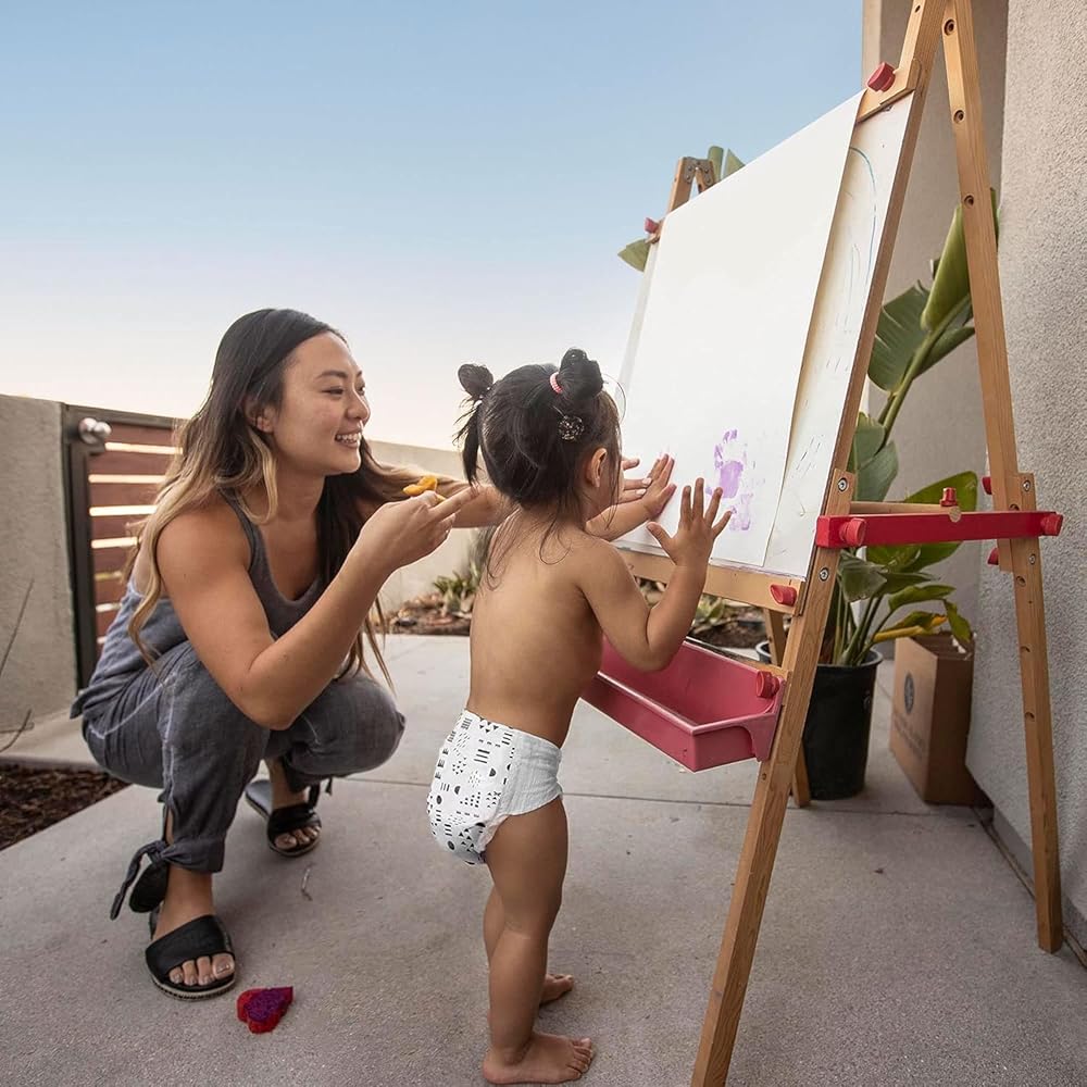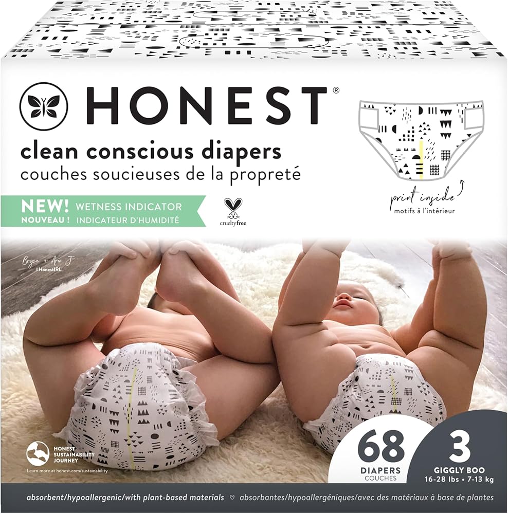 Clean Conscious Diapers are designed with safe plant-based materials, a wetness indicator (so you know when it's time for a fresh one), enhanced blowout protection, and advanced absorption for dry, happy babes
