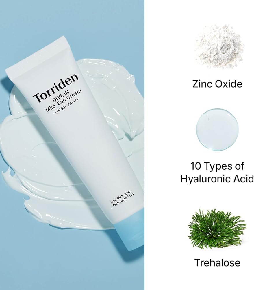 Torriden DIVE-IN واقي من الشمس خفيف، نباتي، واسع الطيف SPF 50+ PA++++، غير نانو، واقي شمسي معدني آمن للشعاب المرجانية لجميع أنواع البشرة | خالي من العطور والكحول والملونات | العناية بالبشرة الكورية