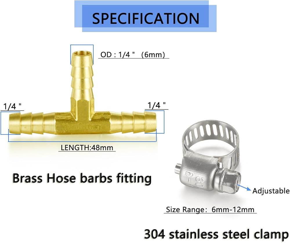 【المواد】: تركيبات خرطوم الهواء 1/4 مصنوعة من النحاس، ومشبك الخرطوم مصنوع من الفولاذ المقاوم للصدأ 304 ولن يصدأ؛