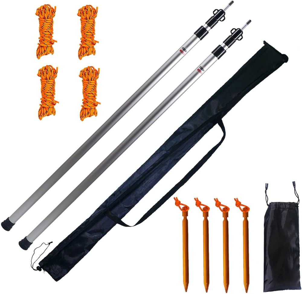 جودة فاخرة: أعمدة الخيمة مصنوعة من سبائك الألومنيوم خفيفة الوزن، قوية ومتينة. عمود دعم احترافي للأقمشة والخيام وذباب المطر الأرجوحة والمظلات والملاجئ.