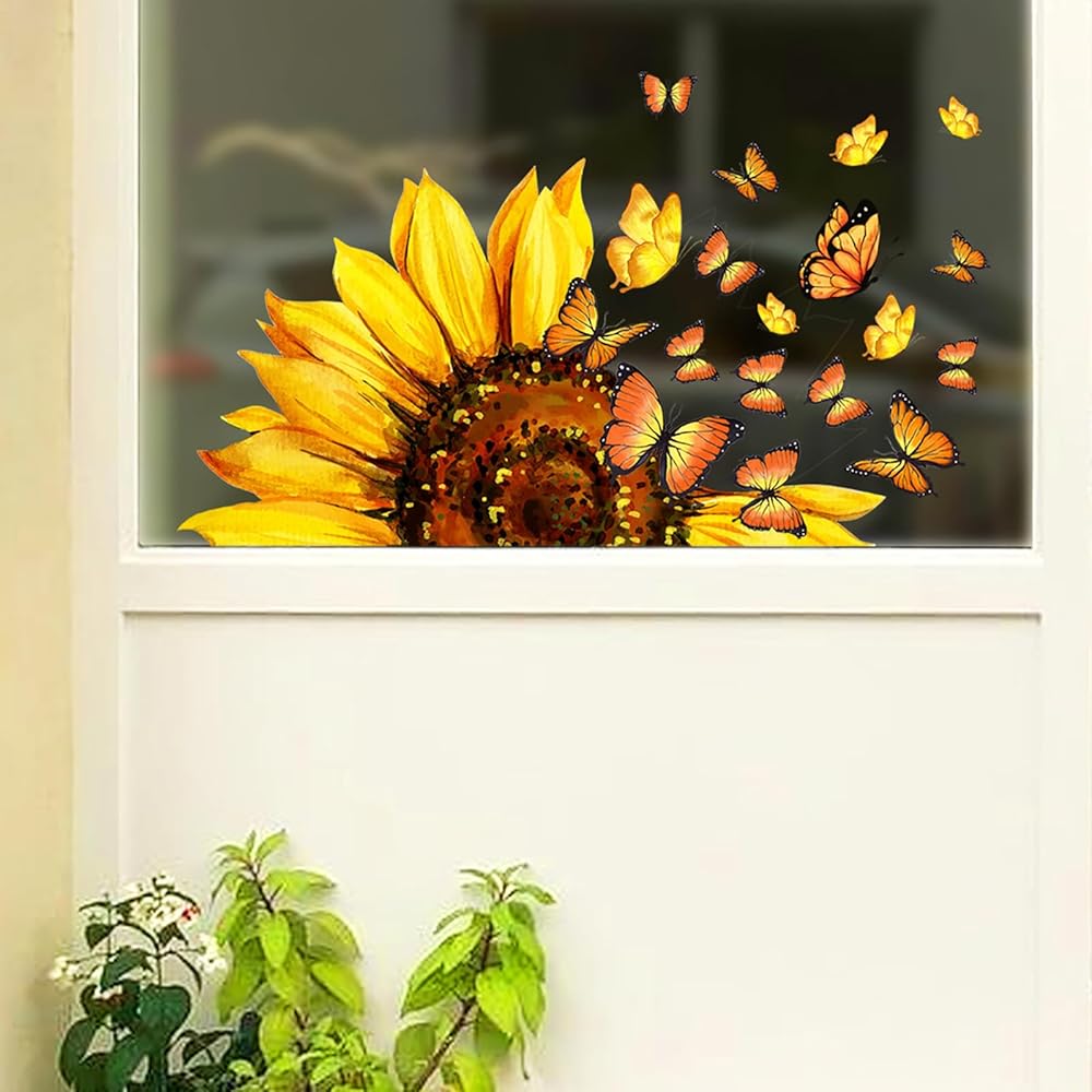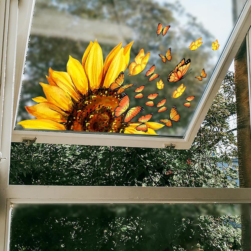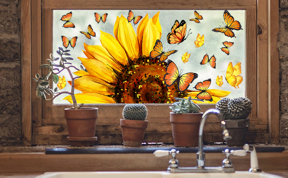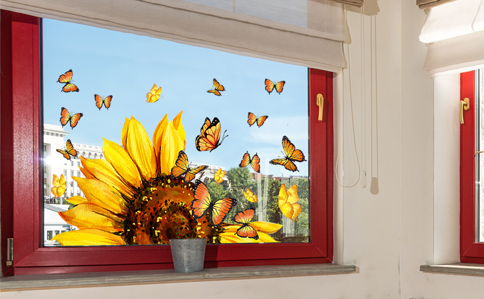 ✅ 【 مطبوعة على الوجهين 】 - تتم طباعة ملصقات النوافذ الربيعية والصيفية بعباد الشمس والفراشات الجميلة على كلا الجانبين. يمكن رؤية الألوان والأنماط الزاهية والحيوية بوضوح من خلال النافذة من الخارج والداخل ويمكن أن تساعدك على خلق تأثير بصري أكثر إمتاعًا.