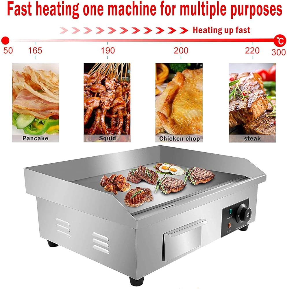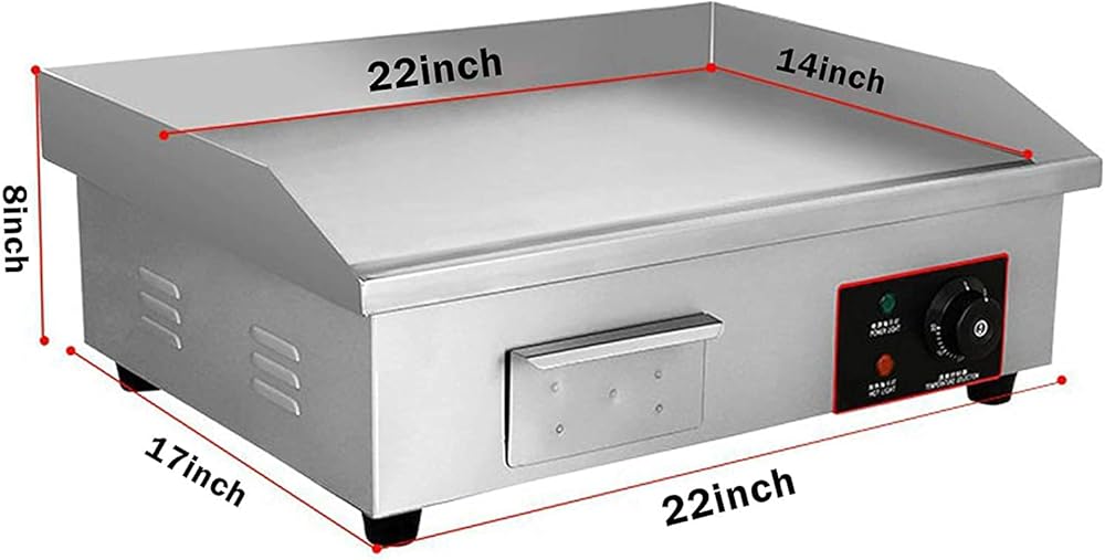 شواية كهربائية تجارية 110 فولت 3000 وات 22 بوصة من الفولاذ المقاوم للصدأ للشواء، طبق مسطح للشواية الساخنة، تحكم ترموستاتي قابل للتعديل 122 درجة فهرنهايت - 572 درجة فهرنهايت، شواية مطعم من الفولاذ المقاوم للصدأ للمطبخ