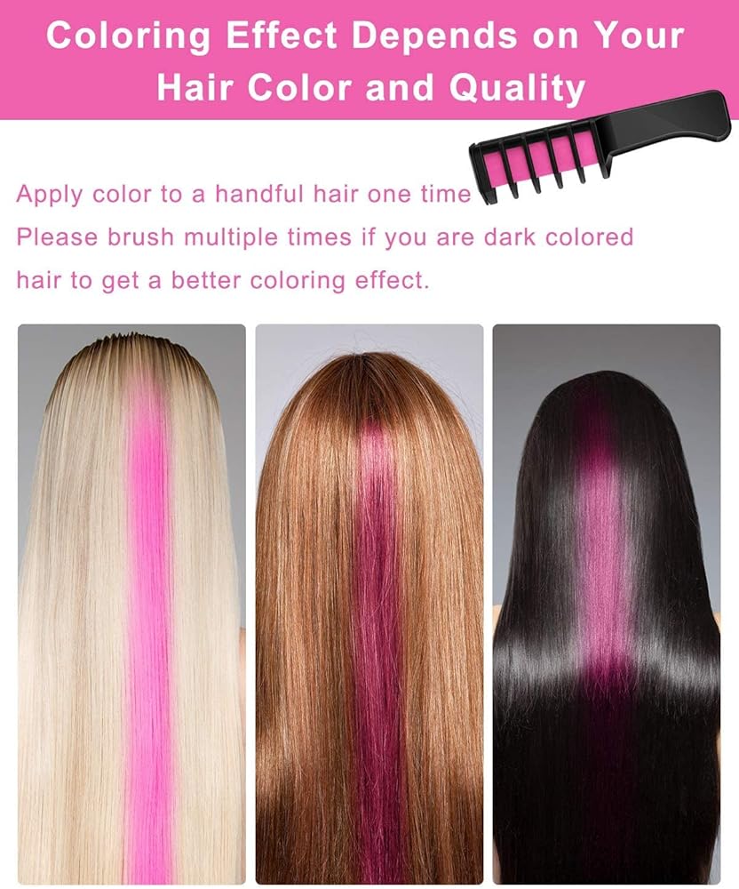 【Easy to Use】With the design of a fixed comb, they are easy to apply to your hair from top to bottom without staining your hands. Keep your hands color-free. This hair chalk features a small comb applicator to simply brush on your hair.