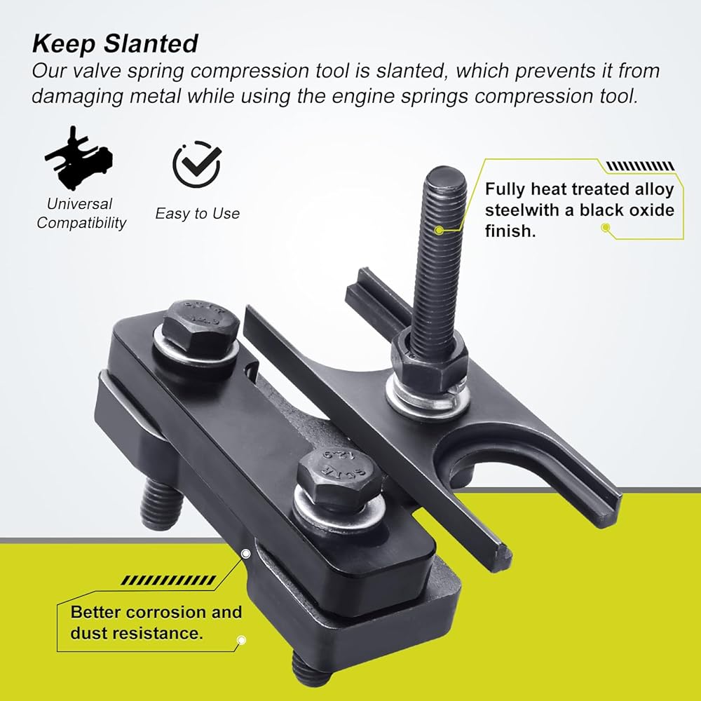 【𝗞𝗲𝗲𝗽 𝗦𝗹𝗮𝗻𝘁𝗲𝗱】أداة ضغط نوابض الصمام مائلة، مما يمنعها من إتلاف المعدن أثناء استخدام أداة ضغط نوابض المحرك.