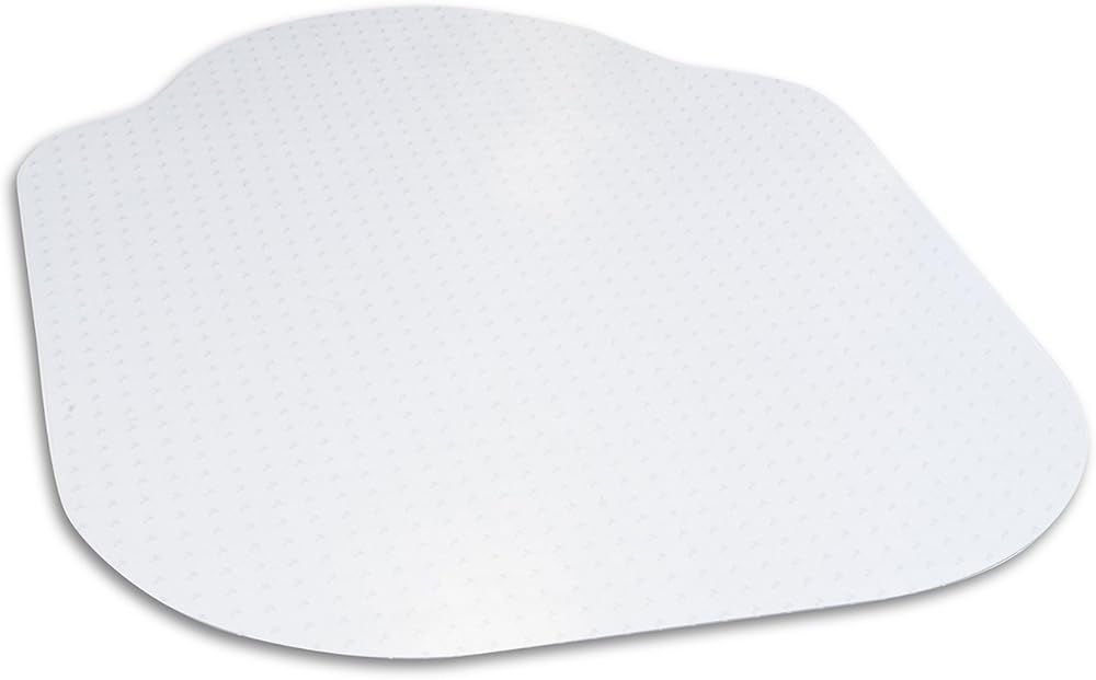 Evolve Modern Shape Chair Mats from Dimex | The chair mats specifically designed for today's 5-star wheel base chairs. The familiar chair mat shapes on the market today were developed over 50 years ago, when pedestal desks were popular. The traditional rectangular lip fit the narrow opening for the legs, offering additional protection from wheel wear in that space. Over the last half century, as office chairs evolved from 3-wheel and 4-wheel bases to the more stable 5-wheel base design and pedestal desks evolved into more open modern style for the office and home, the advancement of chair mats got left behind...until now. Evolve modern shape office chair mats are the result of extensive research on how we move in our workspace relative to today's office chair and contemporary furniture designs. The wide tapered front lip and radius back corners of the mat work in concert with the circular footprint of the 5-star wheel base to offer more efficient use of the rollable surface of the mat, keeping the wheels on the mat in most critical area where the lip meets the rest of the mat. Evolve patented designs bring chair mats into the 21st century. Replacing or repairing carpeted floors can be expensive! Protect your investment with a durable Evolve chair mat engineered to protect your low or medium pile carpet from wear due to the wheels of your office chair rolling back and forth over time. Perfect for low and medium pile carpet thicknesses of 3/8 in. or less. TIP: To determine the thickness of your carpet pile, place a penny edge down in the carpet pile (like measuring a tire tread). If the bottom of Lincoln's nose is at or above the carpet pile, your carpet is 3/8 in. or less.