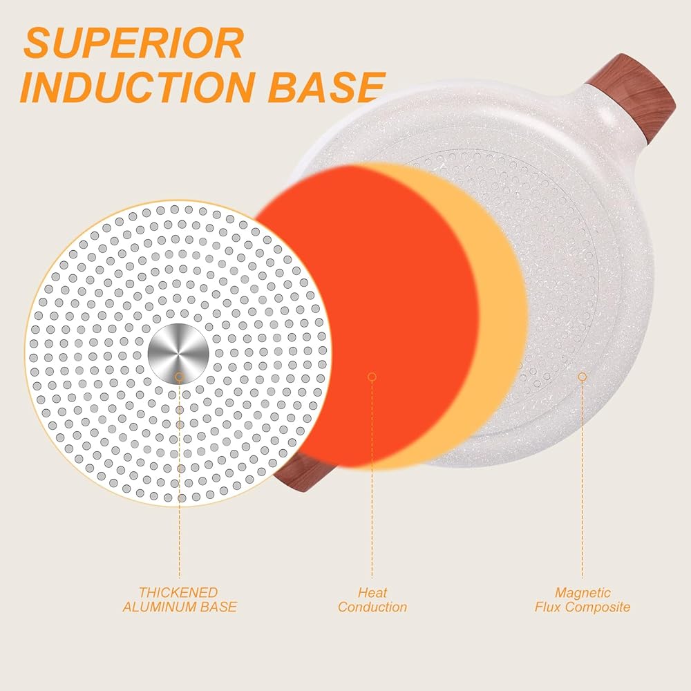 • 【المادة】: الجسم الموصل للحرارة للوعاء المقسم للطهي مصنوع من سبائك الألومنيوم، مما يجعل وعاء التسخين يسخن بشكل أسرع ويقلل من وقت طهي الطعام. السطح مصنوع من طلاء غير لاصق صالح للطعام، والذي يتميز بأداء جيد ضد الخدش وخالي من المواد الكيميائية السامة مثل PFOA، لذلك يمكنك الاستمتاع بطعامك براحة البال، وفي الوقت نفسه، الطلاء أيضًا لديه الموصلية الحرارية الجيدة.