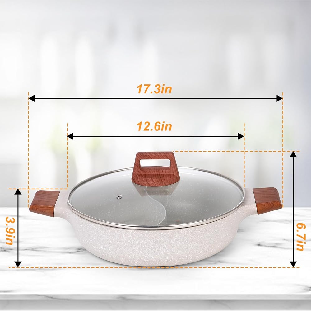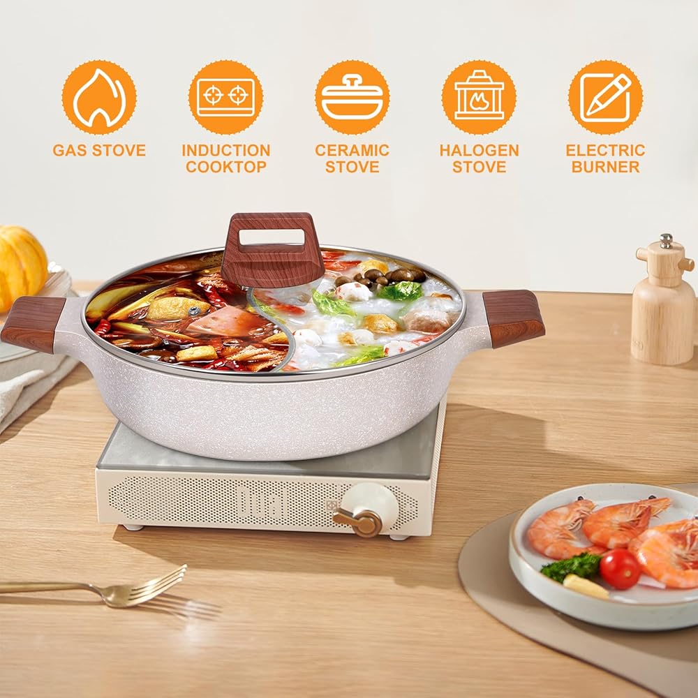 • 【موقد عالمي】: تم تصميم الجزء السفلي من الوعاء الساخن الصيني باستخدام ورقة موصل مغناطيسية رقم 430، ودرجة الحرارة الآمنة للوعاء المنفصل هي 280 درجة مئوية، والسمك 4.5 مم، مما يجعله مناسبًا لمعظم المواقد، مثل: مواقد الحث والغاز والأشعة تحت الحمراء وغيرها من أنواع المواقد.