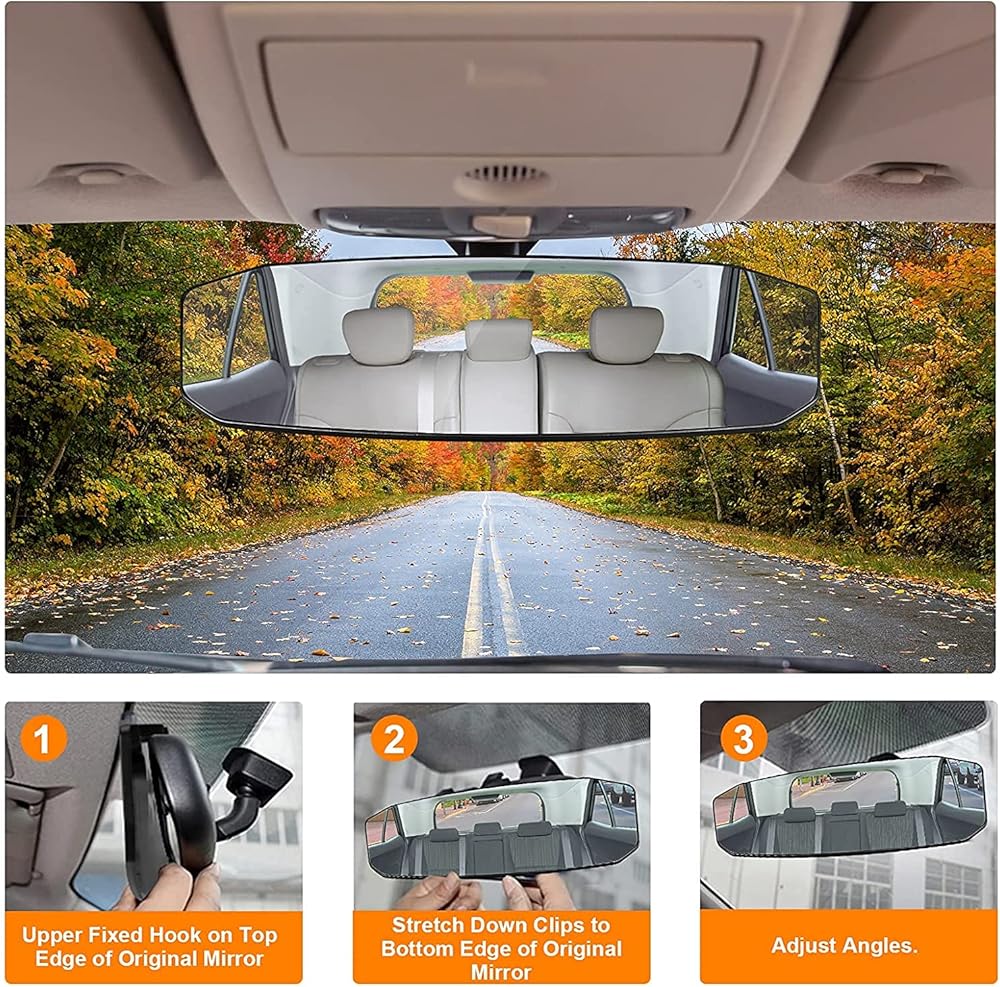 Stemni 12x3.6'' Rear view Mirror Panoramic Wide Angle Rearview Mirror Universal Interior Clip On Convex Rear View Mirror Lengthened Widened No Blind Spot for Car SUV Truck Boat
