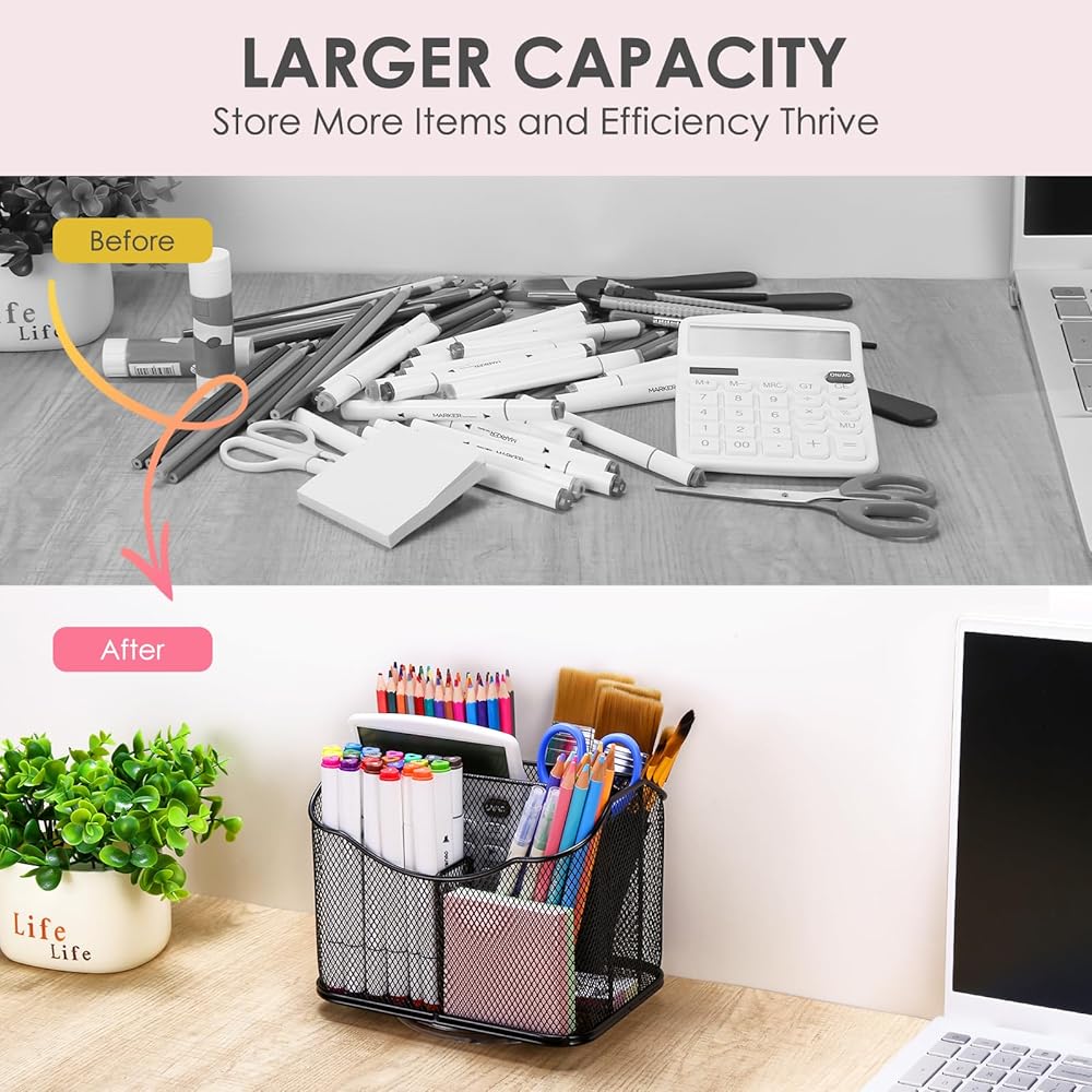 ✿المتانة تلبي التحسين✿: تم تصميم منظمات وإكسسوارات المكتب لدينا مع وضع المتانة في الاعتبار، وتتميز بهيكل قوي وحواف ناعمة تضمن أداءً طويل الأمد. هذه القطعة المصممة بدقة لا تحافظ على أغراضك منظمة فحسب، بل تعزز أيضًا الجمال العام للمساحة الخاصة بك. قل وداعًا للفوضى ورحب بمساحة عمل أنيقة وعصرية.