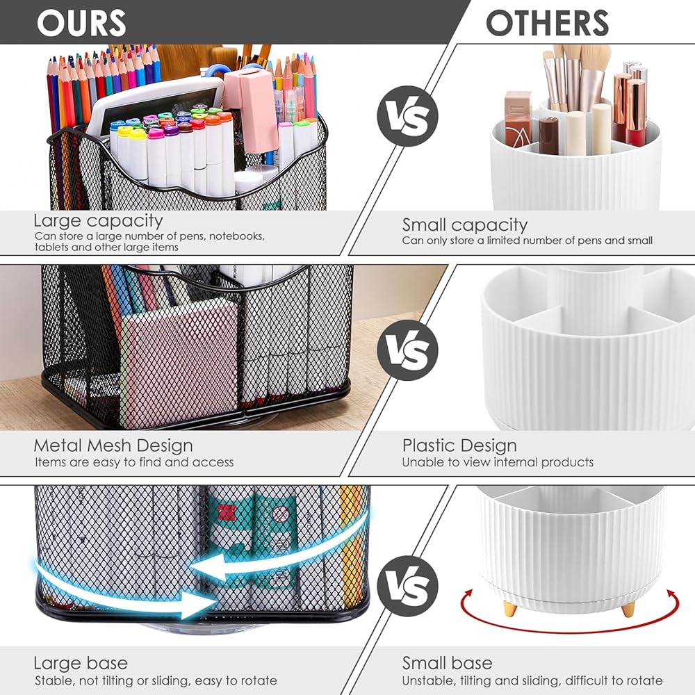 ✿ مناسب لاحتياجات التخزين المختلفة: منظم مكتب Housmile لا يقتصر على عناصر محددة. إنها مناسبة لتخزين القرطاسية الصغيرة، والملاحظات اللاصقة، والمقص، والأشرطة، والدباسات، ومحركات الأقراص المحمولة، والممحاة، والأشرطة المطاطية، والمساطر، والأقلام، وأقلام الرصاص، ومشابك الورق، ومسامير الورق، وأقلام التحديد، وأقلام التحديد، والغراء، واللوازم الفنية والحرفية، وفرش الطلاء، والأدوات المنزلية ونظارات القراءة والمكياج والمجوهرات وأحمر الشفاه والهواتف المحمولة والمفاتيح وبطاقات العمل وغير ذلك الكثير. الاحتمالات لا حصر لها!