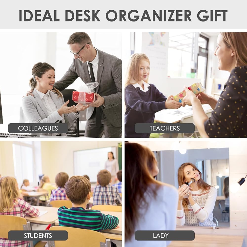 ✿ تناسب أي مكان تحتاجه، رائعة كهدية✿: تم تصميم ملحقات المكتب متعددة الاستخدامات هذه لتتناسب بسلاسة مع بيئات مختلفة، سواء كان مكتبك المنزلي، أو مكتب العمل، أو المدرسة، أو الفصل الدراسي، أو ورشة العمل، أو الاستوديو، أو أي مكان آخر تحتاج إليه. . حجمه الصغير يسمح بوضعه على أجهزة الكمبيوتر المكتبية، والمكاتب المدرسية، وخزائن غرف النوم، وطاولات القهوة، والأرفف، أو حتى مساكن الطلبة الجامعيين وغرف المعيشة. بالإضافة إلى ذلك، فهو يمثل هدية استثنائية لأي شخص يقدر التنظيم والأناقة.