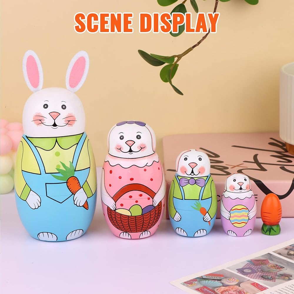 1. You will get: 1 cute little animal wood doll (chicken or rabbit), 5 pieces in total.
