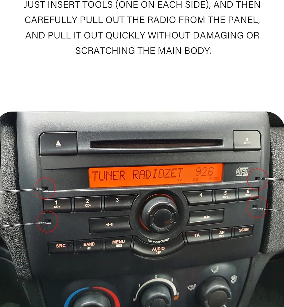 [Easy to Use] This U-shaped car radio removal tool allows you to easily and quickly remove car stereo. Just insert the tool (one on each side) and carefully pull the radio out of the panel for quick removal.