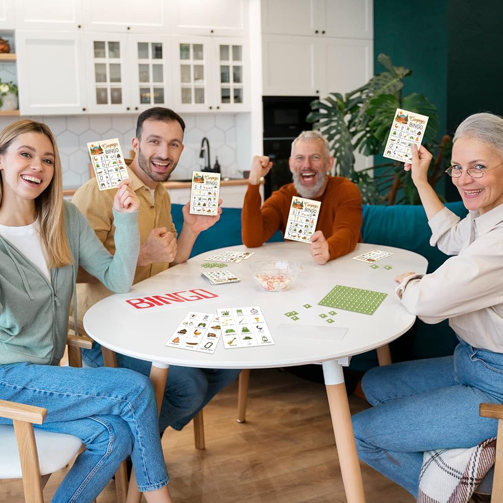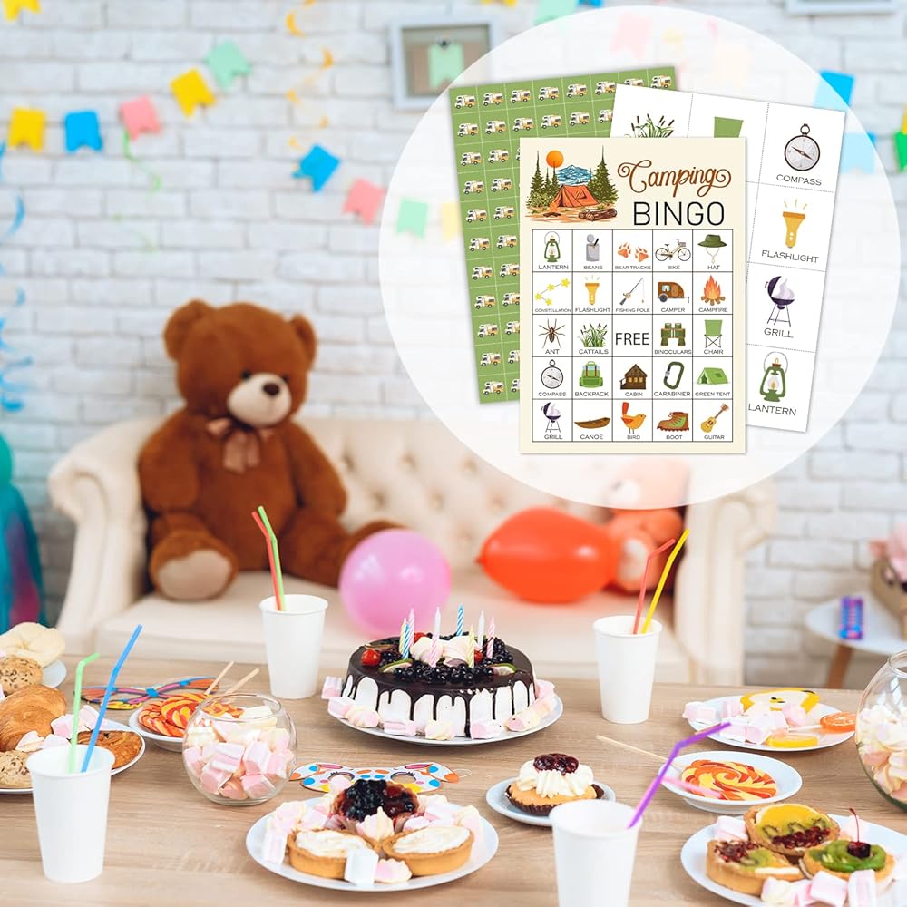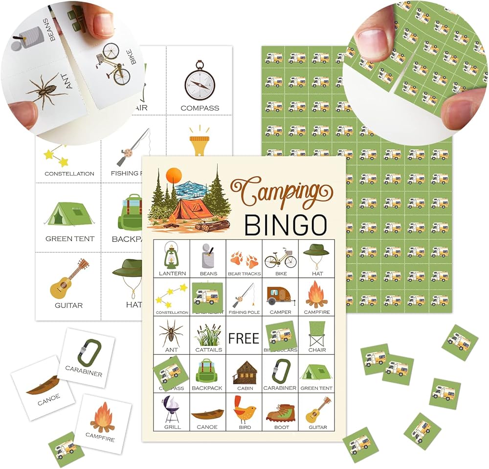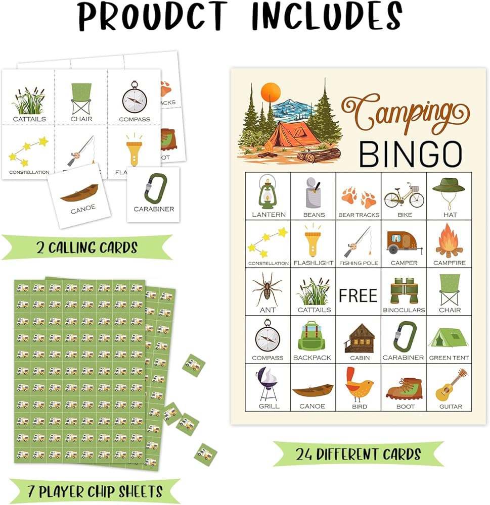 لعبة بينجو لحفلات التخييم للأطفال، والحفلات المدرسية، وحفلات أعياد الميلاد للبالغين، ومستلزمات حفلات العطلات العائلية، والتخييم الصيفي في الهواء الطلق والمشي لمسافات طويلة في الأماكن المغلقة، لعبة حفلات الرحلات، بطاقات ألعاب بينجو لـ 24 شخصًا - GAME-05