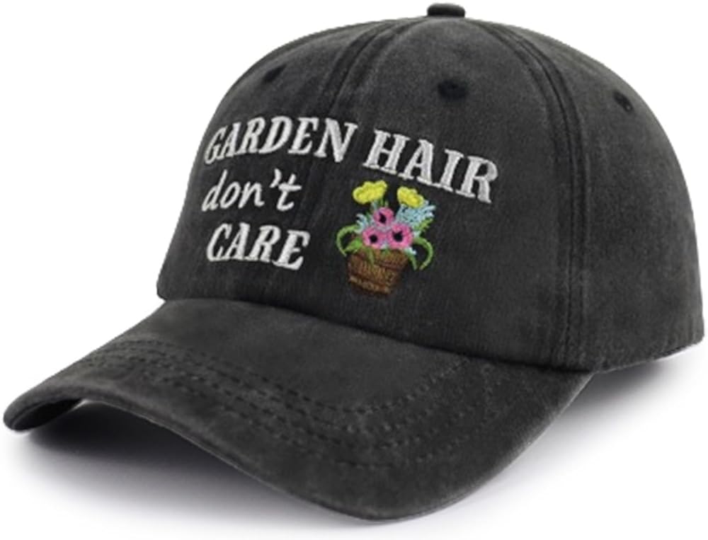 هدايا البستنة للنساء والرجال: قبعة البيسبول الخاصة بنا مطرزة بأنماط دقيقة وعليها عبارة "شعر الحديقة لا يهتم". إذا كنت ترغب في إضافة المزيد من المرح لعشاق النباتات، فلا يوجد خيار أفضل من قبعة البيسبول كهدايا البستنة. يمكنك مشاركة قبعات البيسبول التي لا تهتم بشعر الحديقة مع عائلتك أو أصدقائك، وهي ديكورات رائعة لحفلات الحديقة وأيضًا هدية عيد ميلاد وهدايا تقاعد للبستانيين.